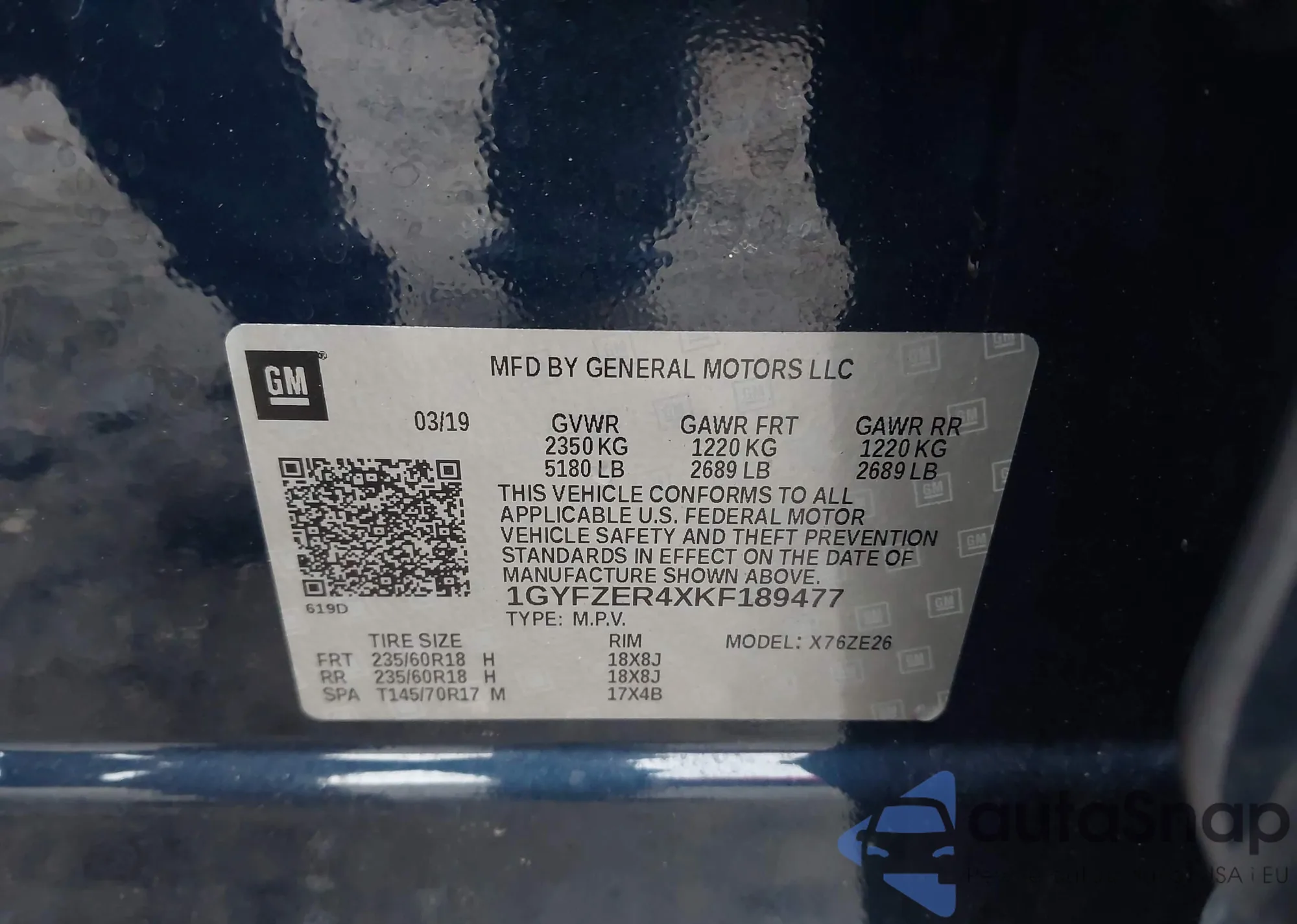 • VIN 1GYFZDR40KF228989
