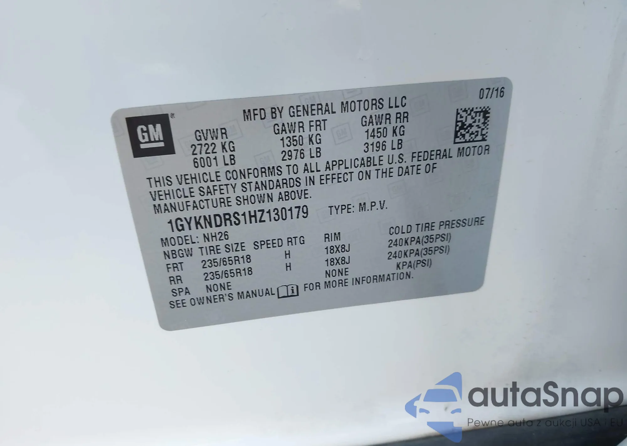 LOT: 44159689 VIN: 1GYKNDRS1HZ130179