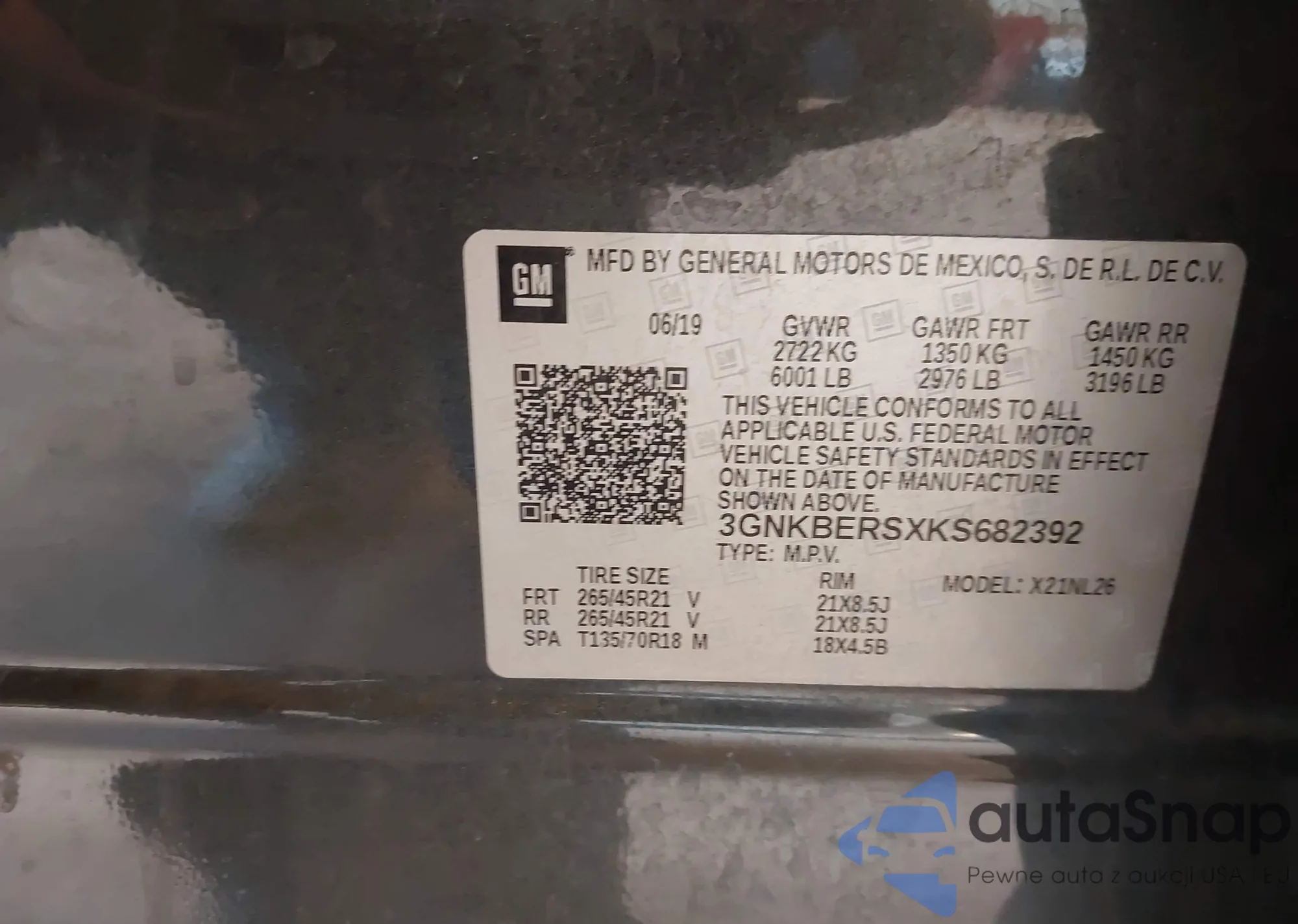 LOT: 43980477 VIN: 3GNKBERSXKS682392