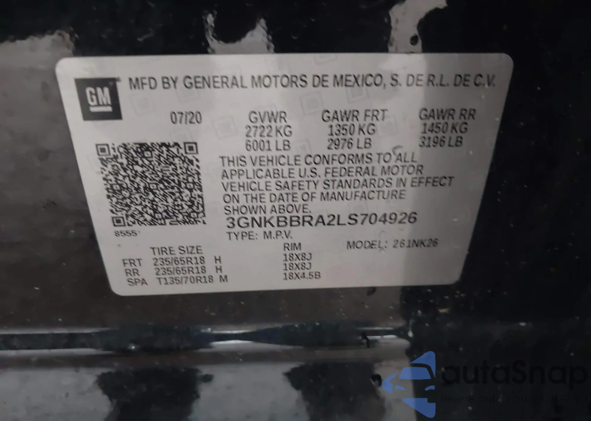 • VIN 3GNKBBRA2LS704926