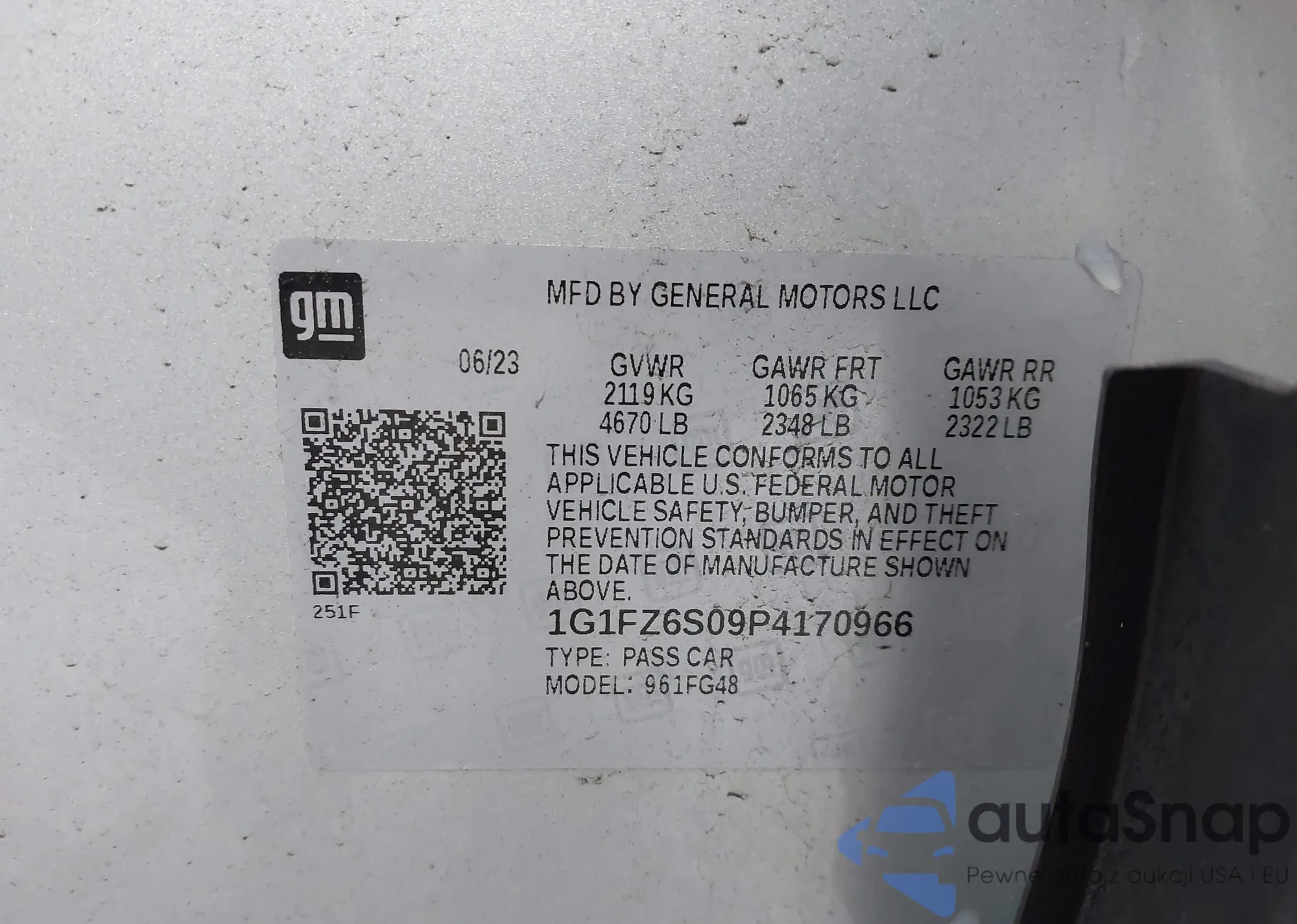 • VIN 1G1FZ6S09P4170966