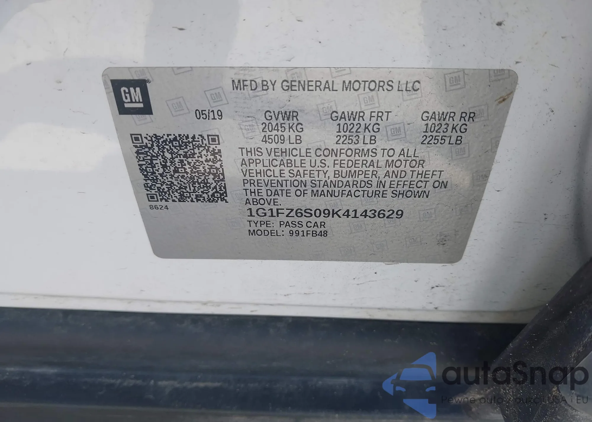 LOT: 44503578 VIN: 1G1FZ6S09K4143629
