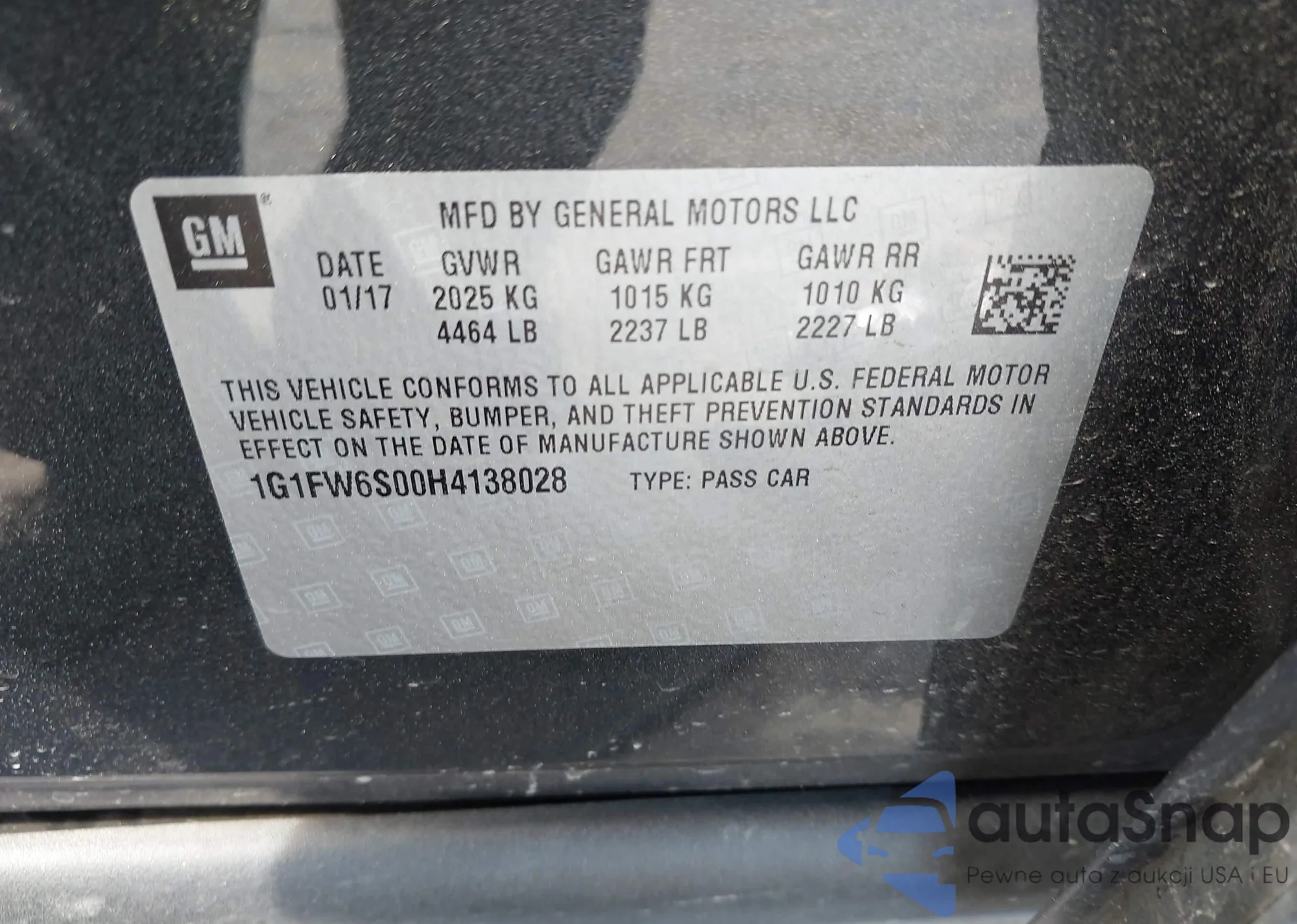 • VIN 1G1FW6S00H4138028
