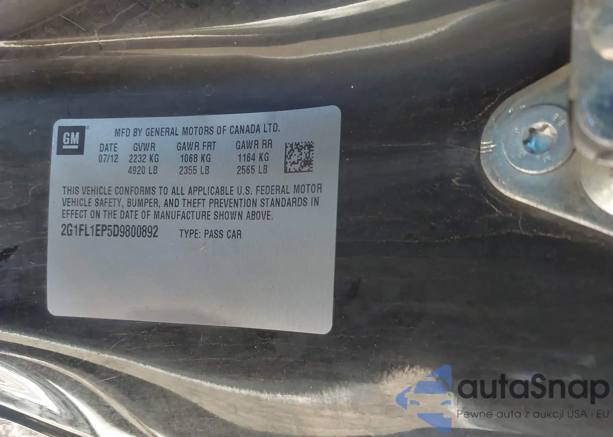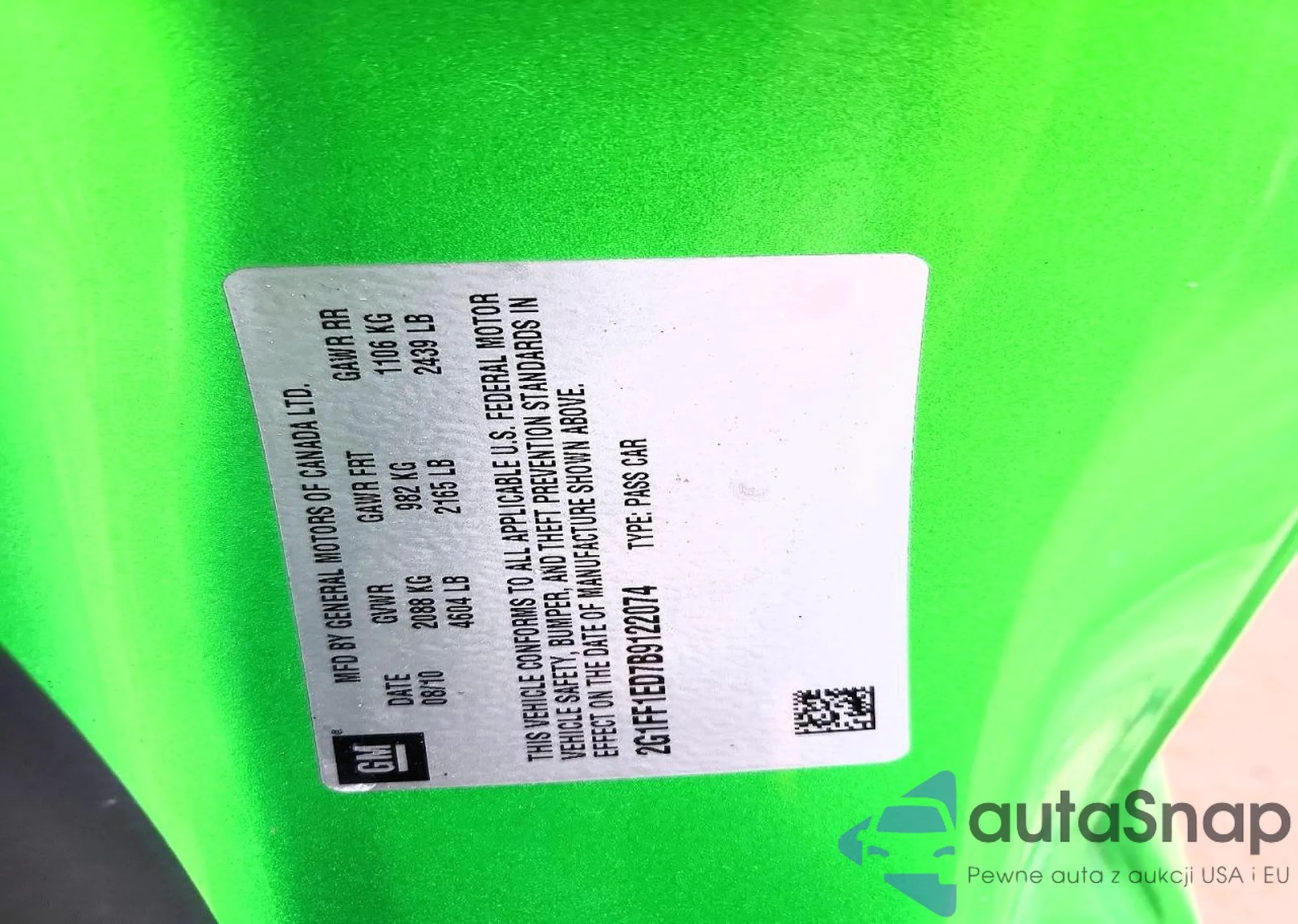 • VIN 2G1FB1EV8A9163770