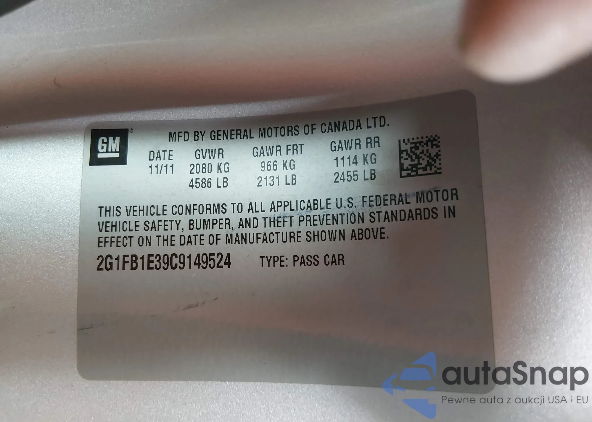 • VIN 2G1FB1E39C9149524