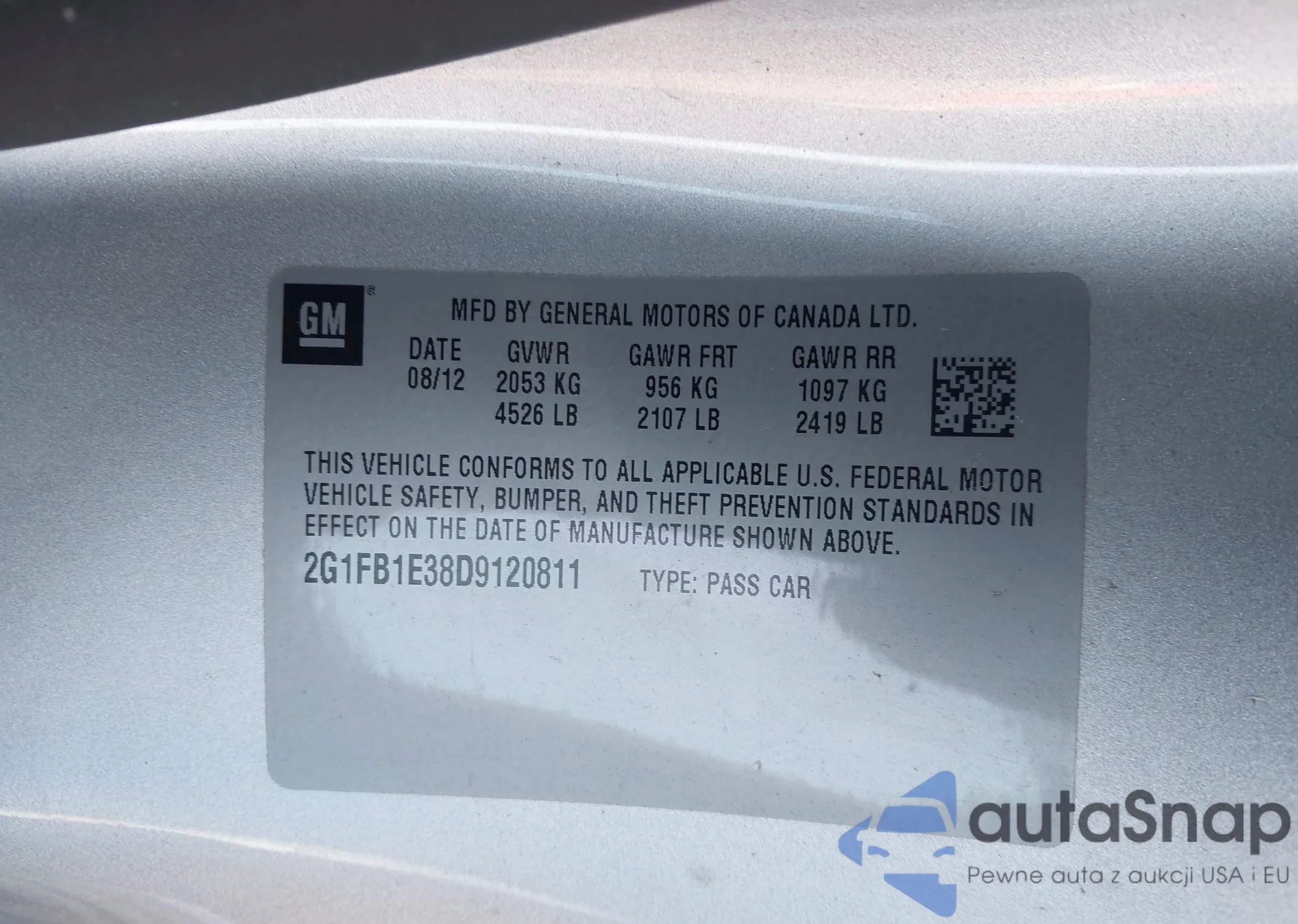 LOT: 43992392 VIN: 2G1FB1E38D9120811