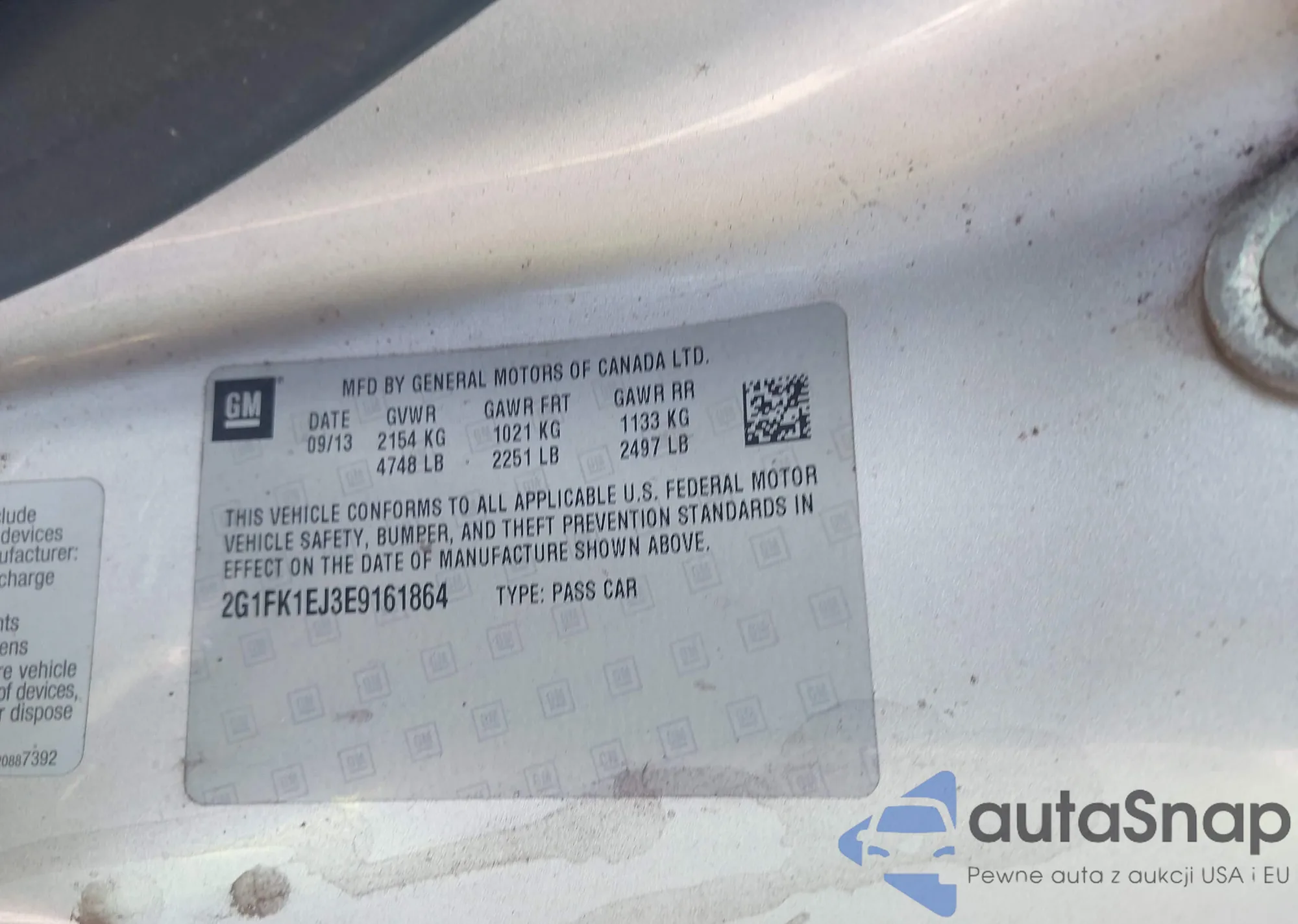 • VIN 2G1FK1EJ3E9161864