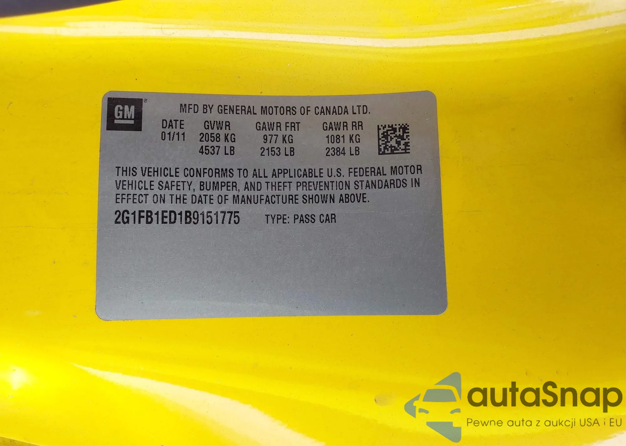 LOT: 44231877 VIN: 2G1FB1ED1B9151775