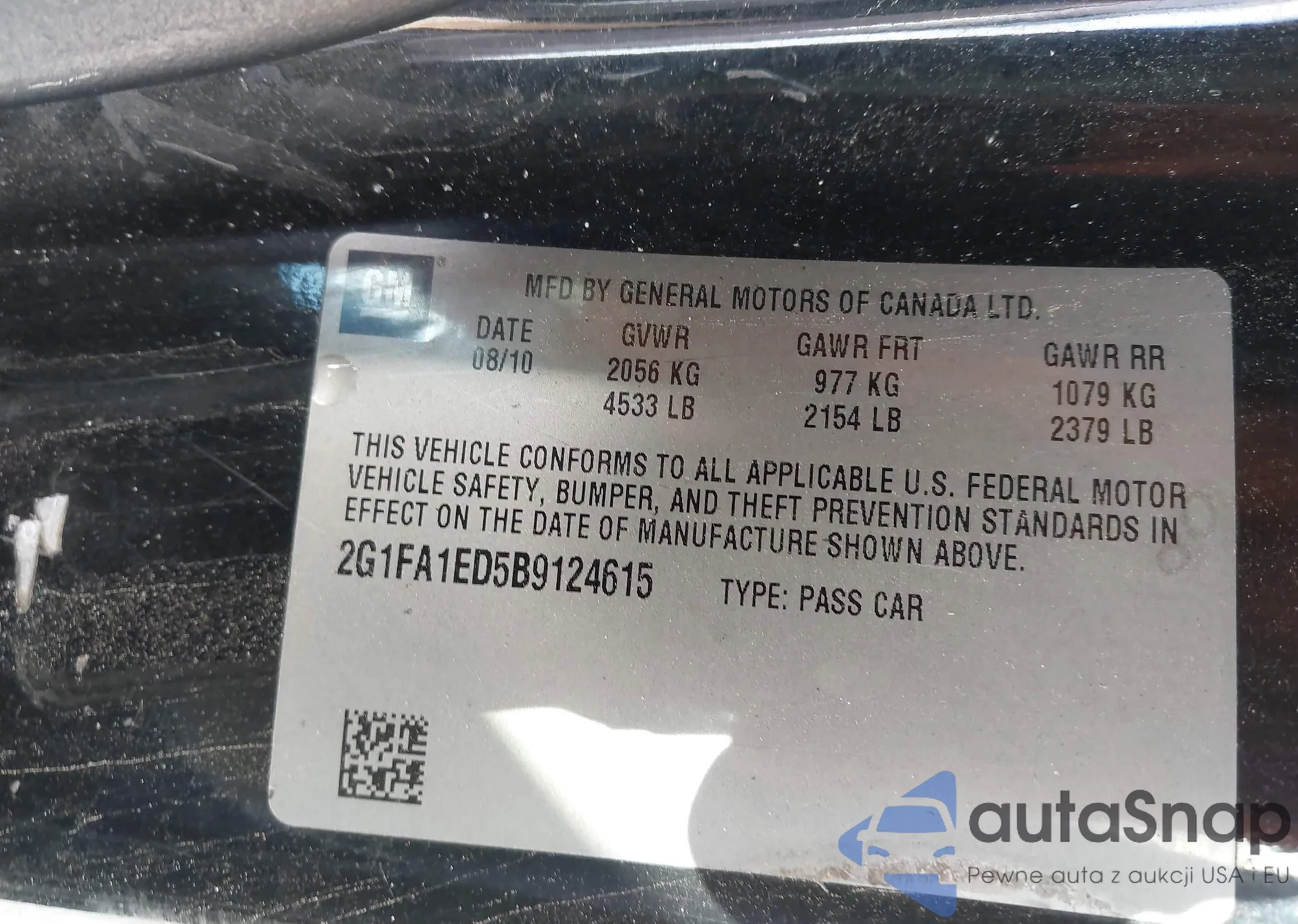 • VIN 2G1FA1ED5B9124615