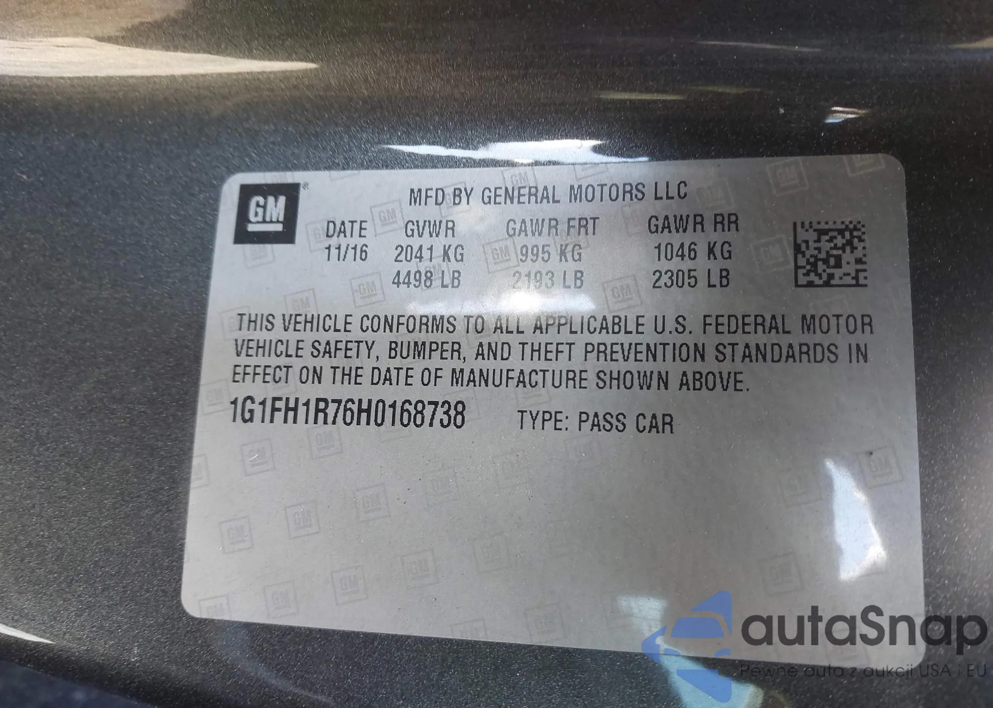 LOT: 44189011 VIN: 1G1FH1R76H0168738