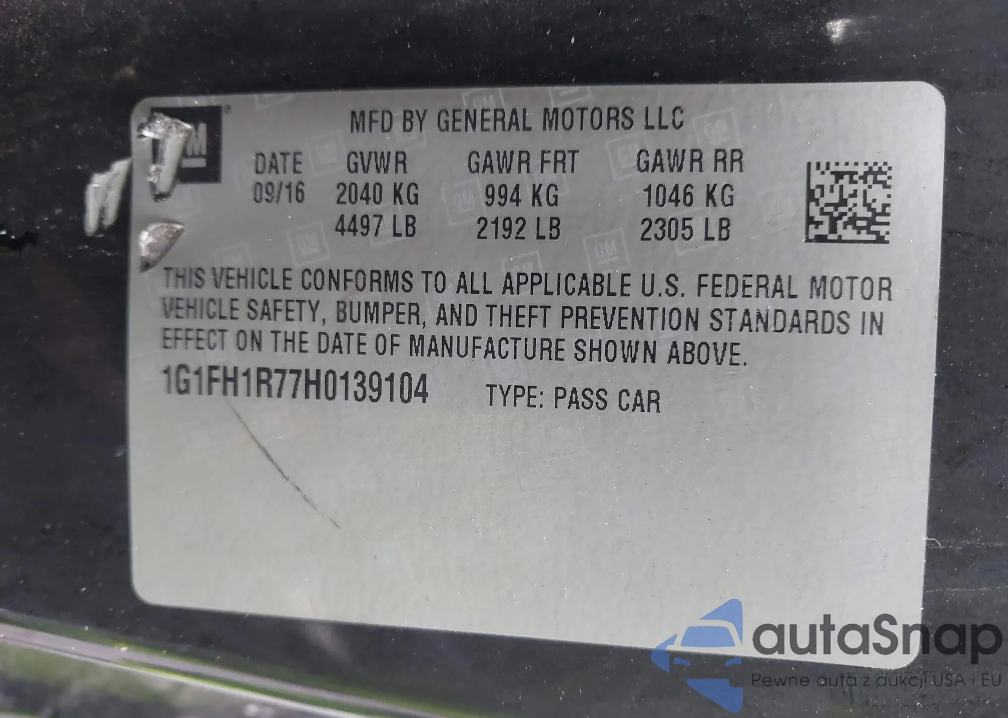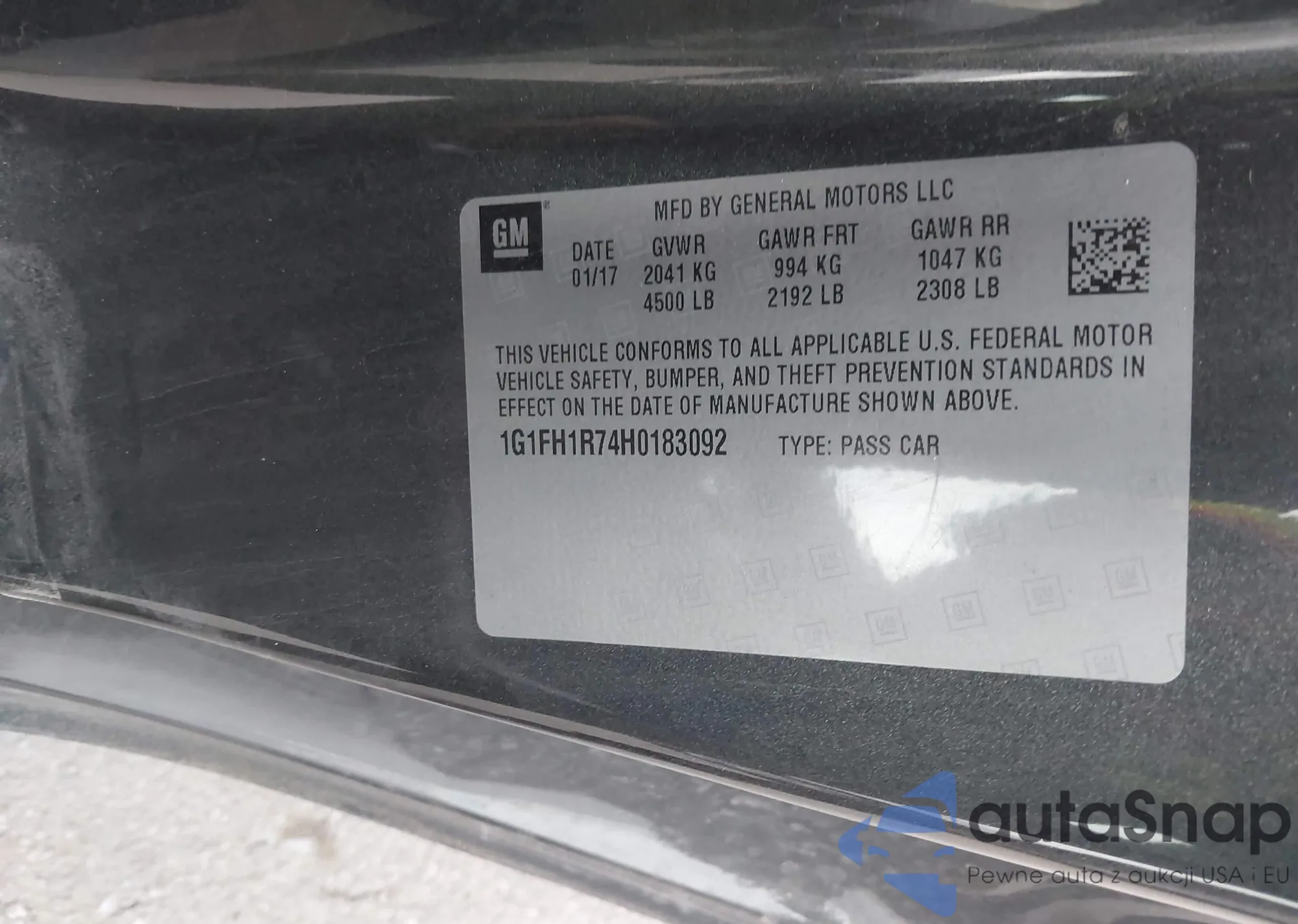 LOT: 43897796 VIN: 1G1FH1R74H0183092