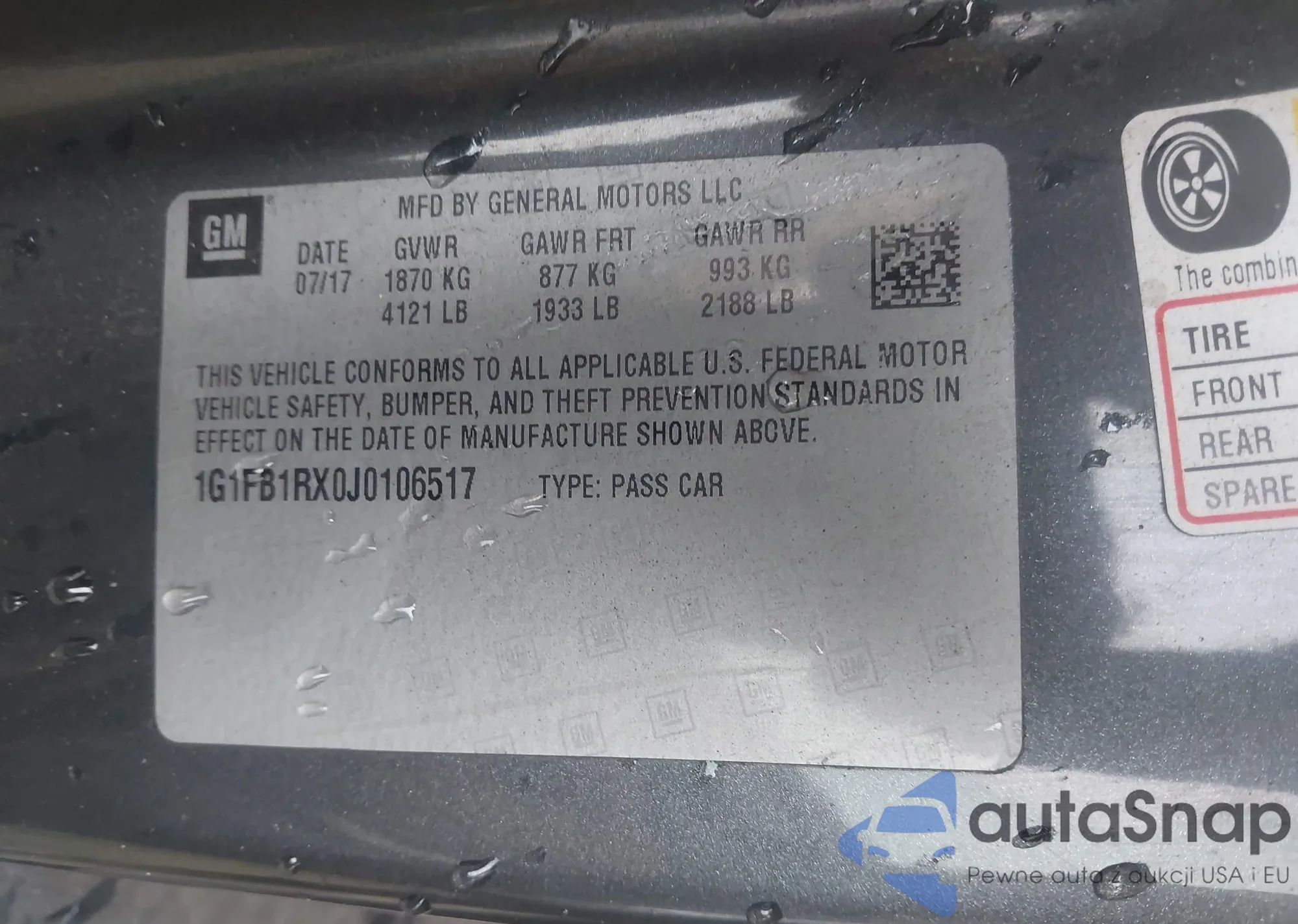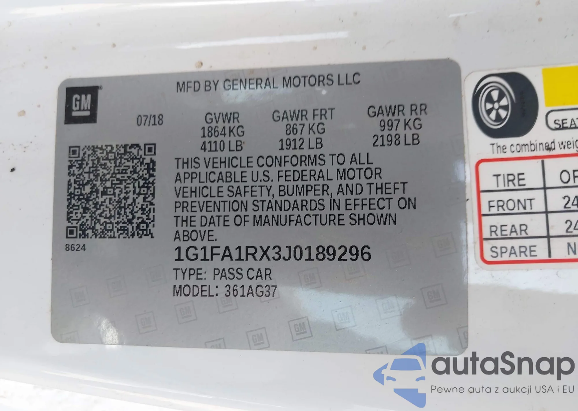 LOT: 44214324 VIN: 1G1FA1RX3J0189296
