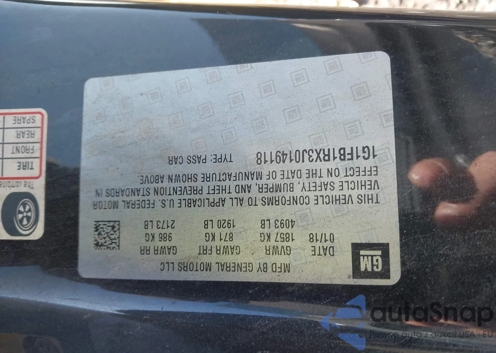 LOT: 44130378 VIN: 1G1FB1RX3J0149118