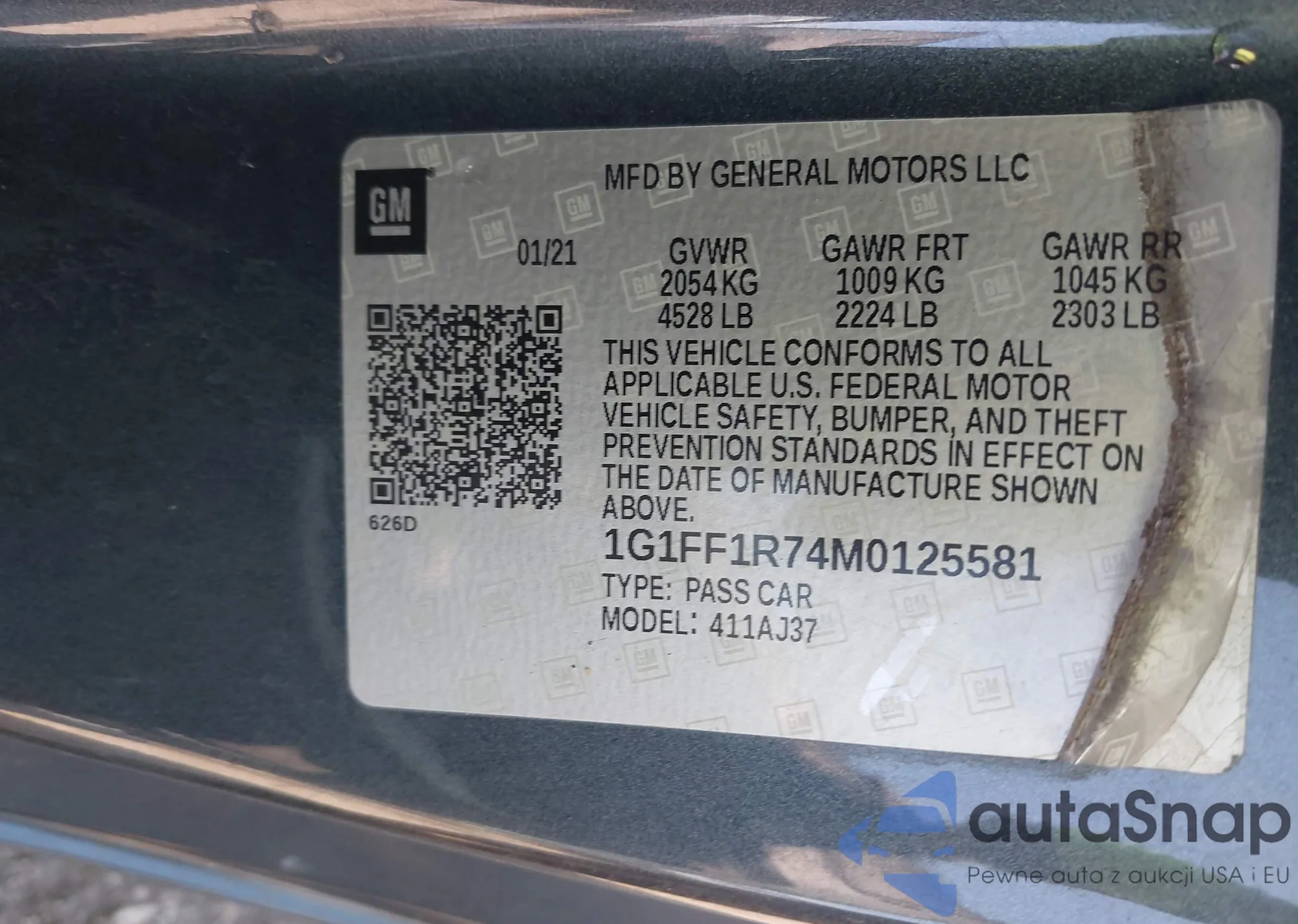 LOT: 44200553 VIN: 1G1FK1R63M0100495