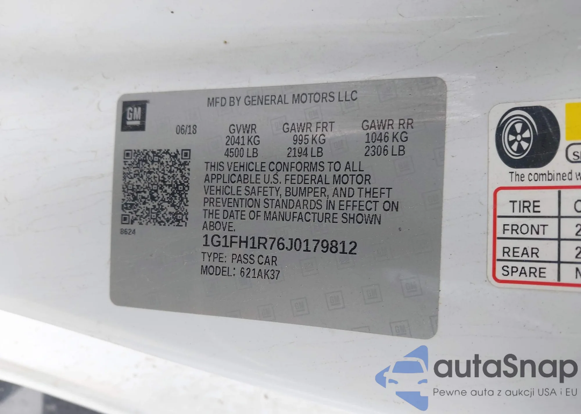 LOT: 44194921 VIN: 1G1FH1R76J0179812