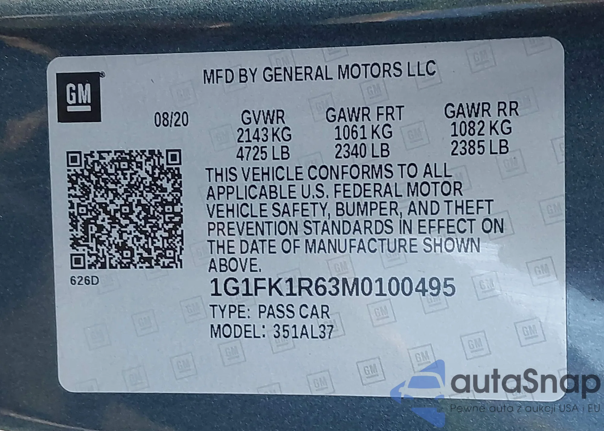• VIN 1G1FK1R63M0100495