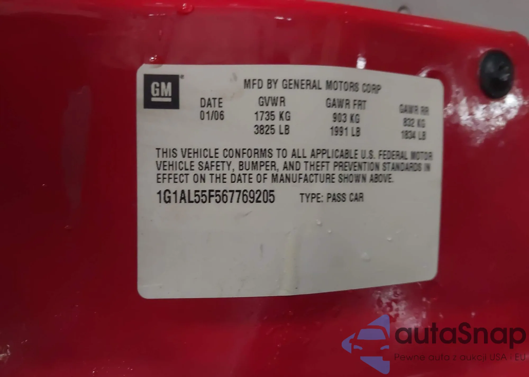 • VIN 1G1AL55F567769205