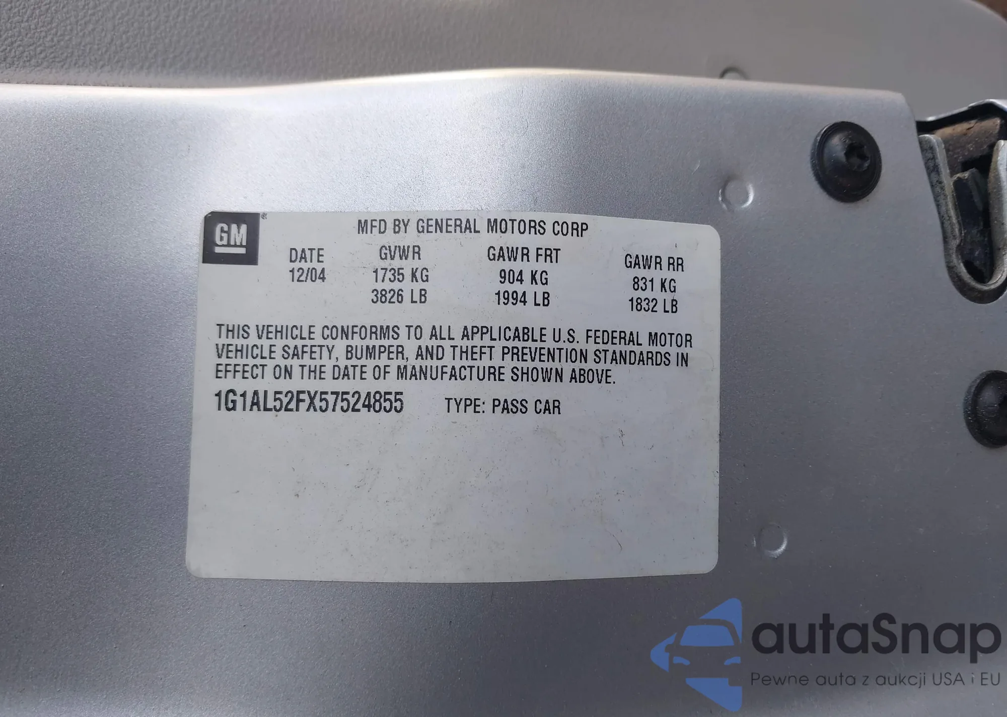 • VIN 1G1AL52FX57524855