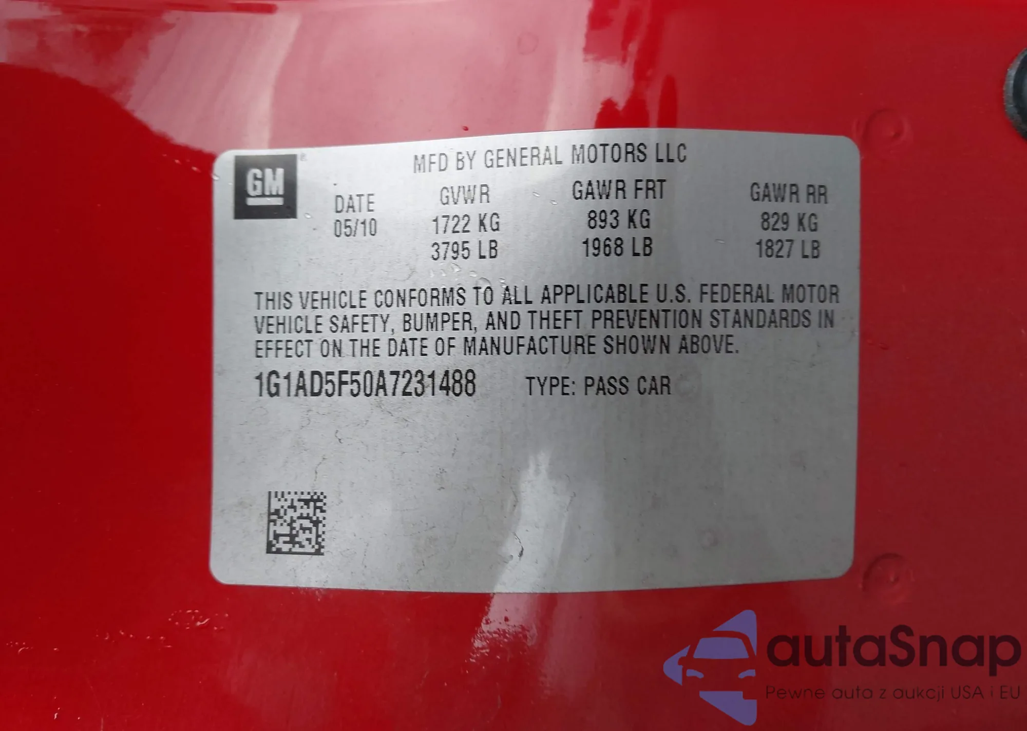 • VIN 1G1AD5F50A7231488