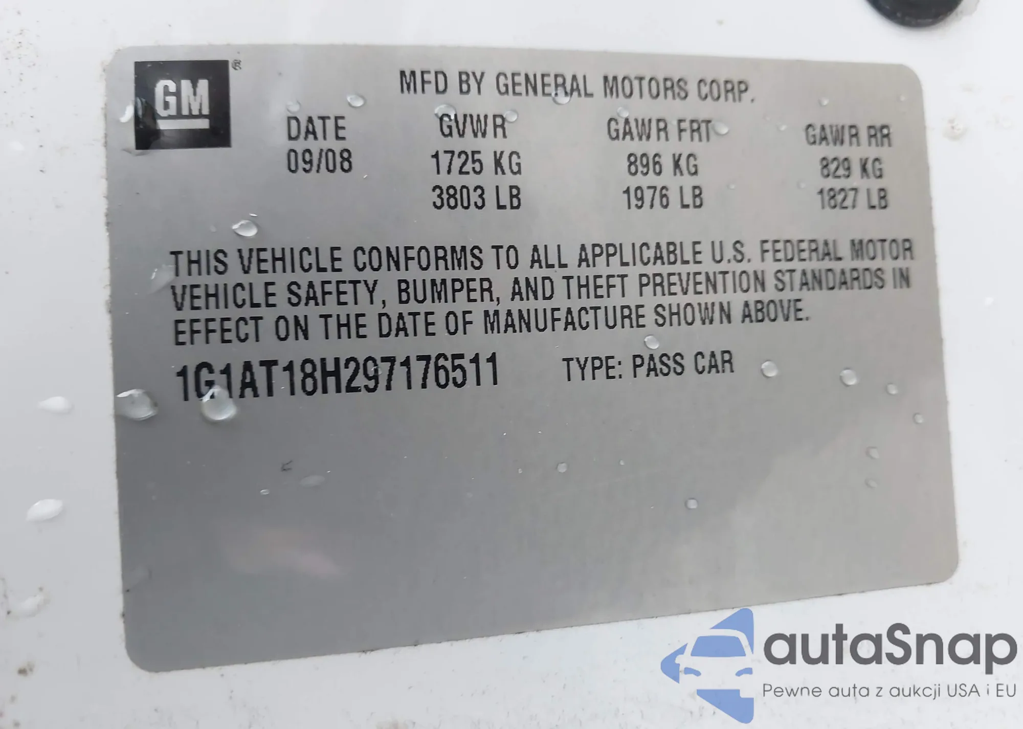 LOT: 43815629 VIN: 1G1AT18H297176511