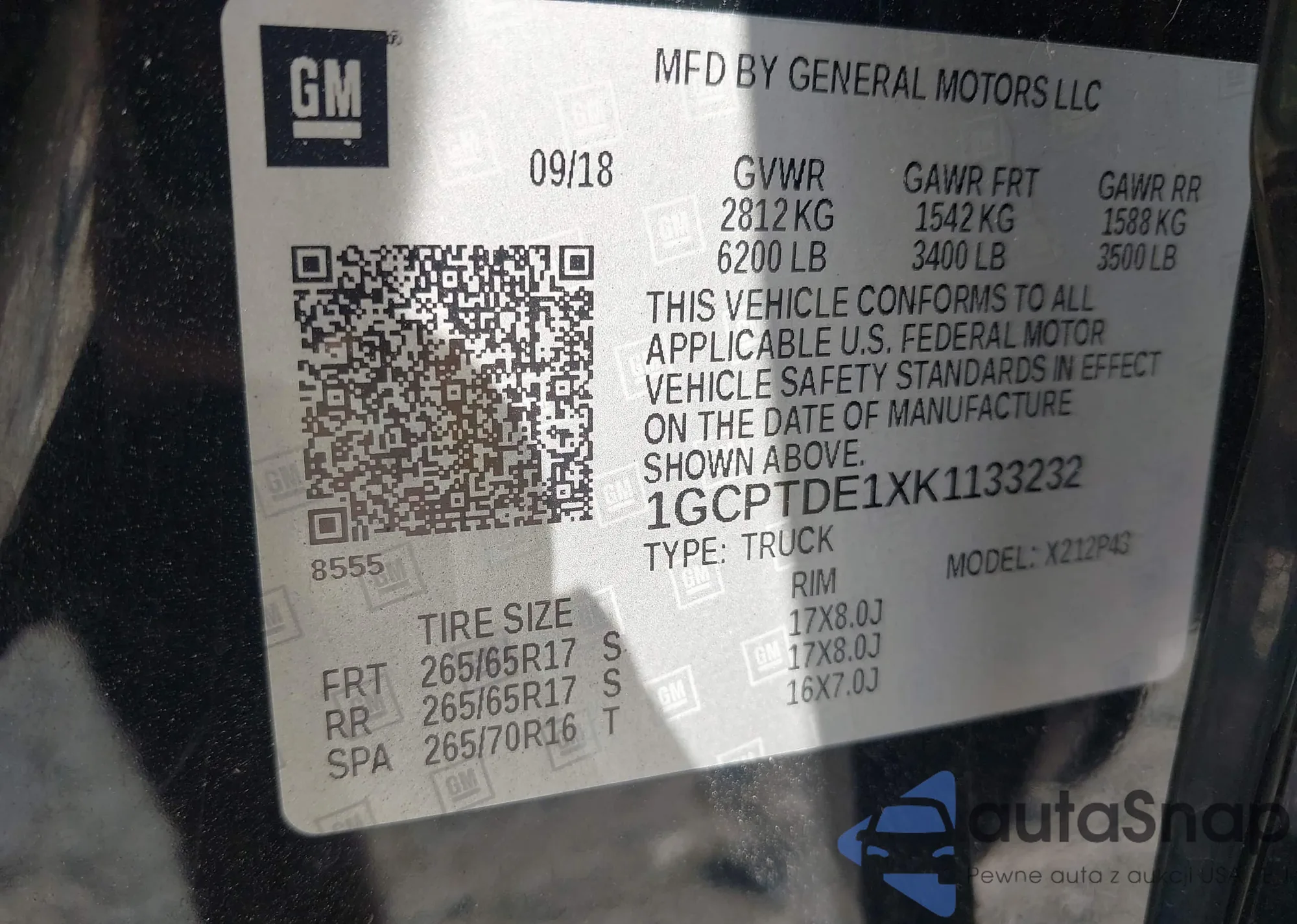 • VIN 1GCPTDE1XK1133232