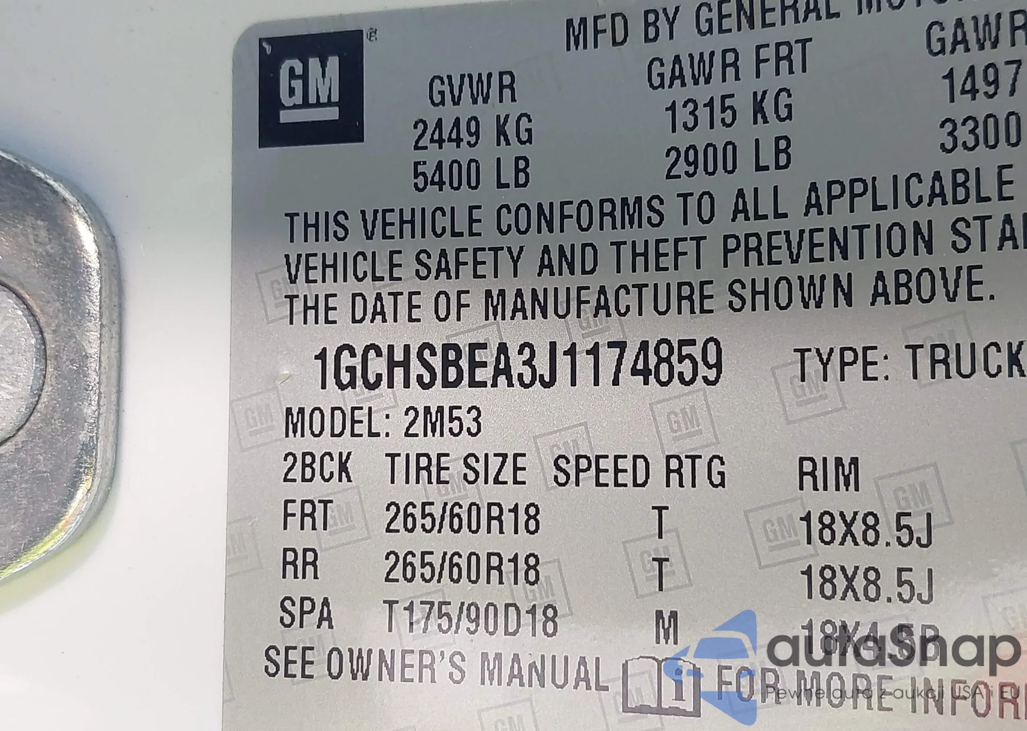 LOT: 43912858 VIN: 1GCHSBEA3J1174859
