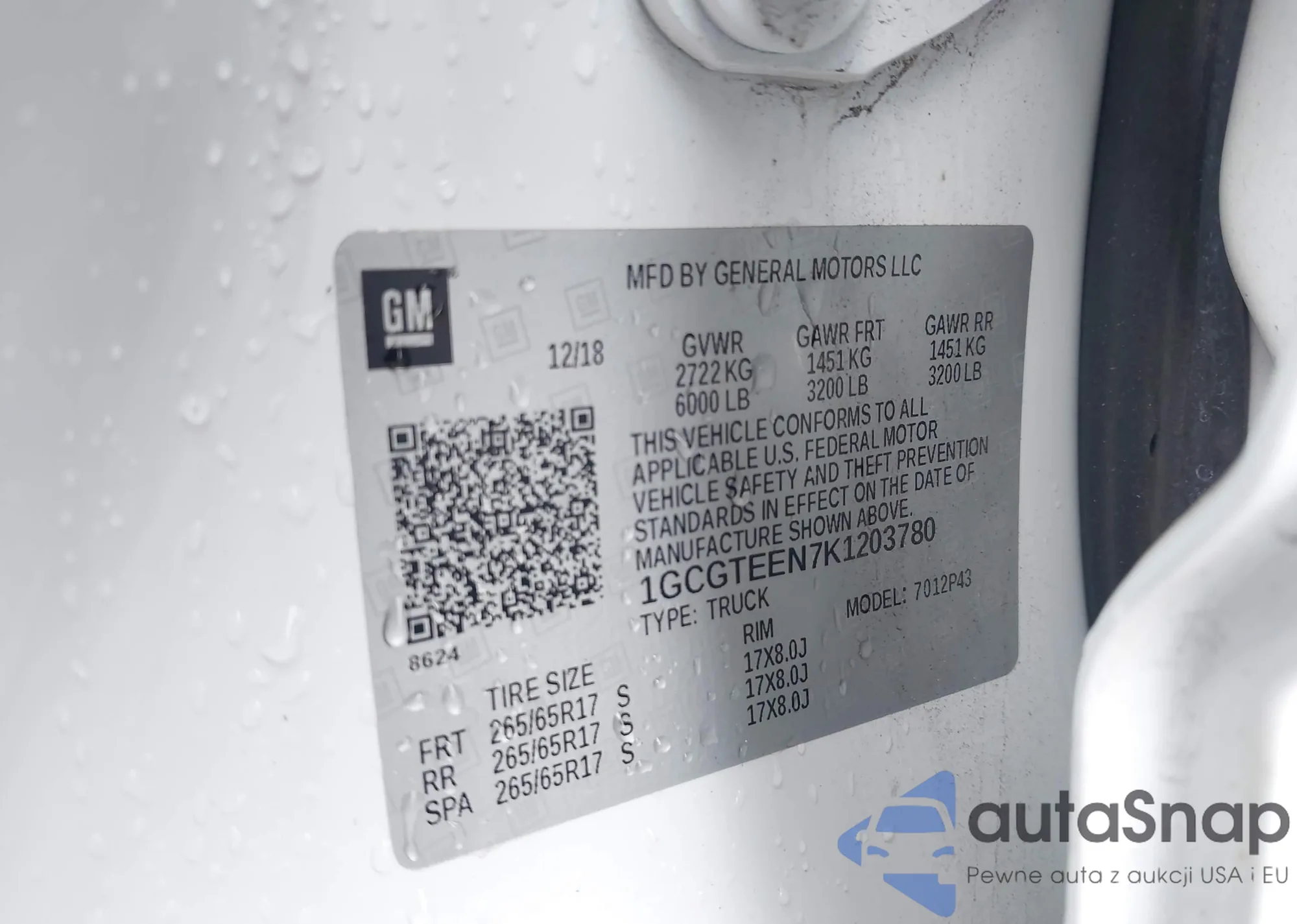 LOT: 43859179 VIN: 1GCGTCEN4J1312538