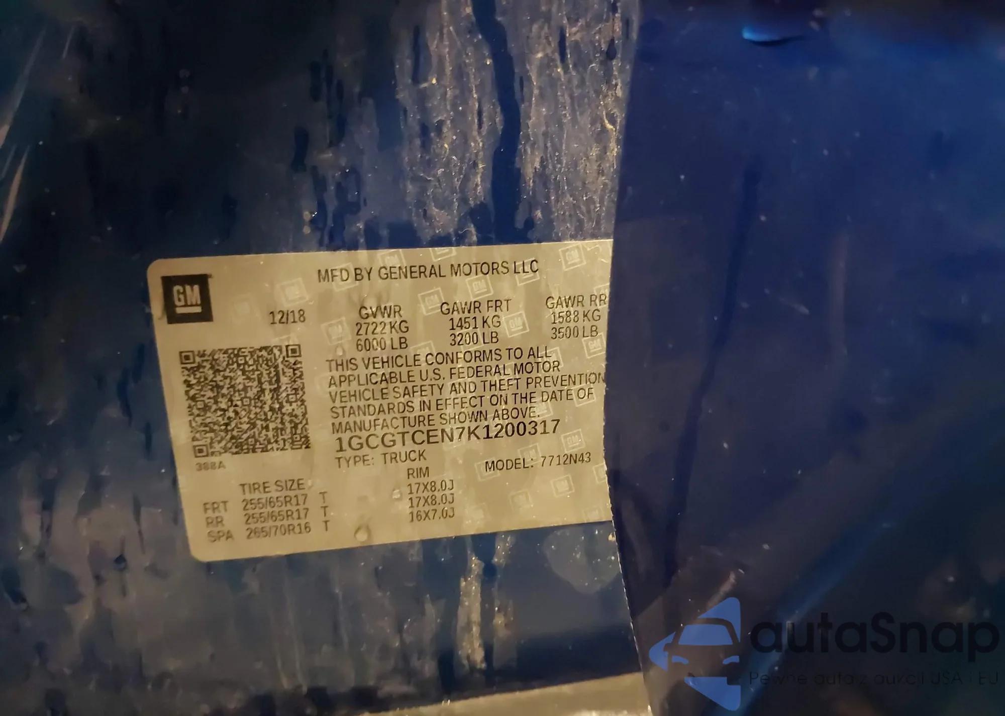 • VIN 1GCGTCEN7K1200317