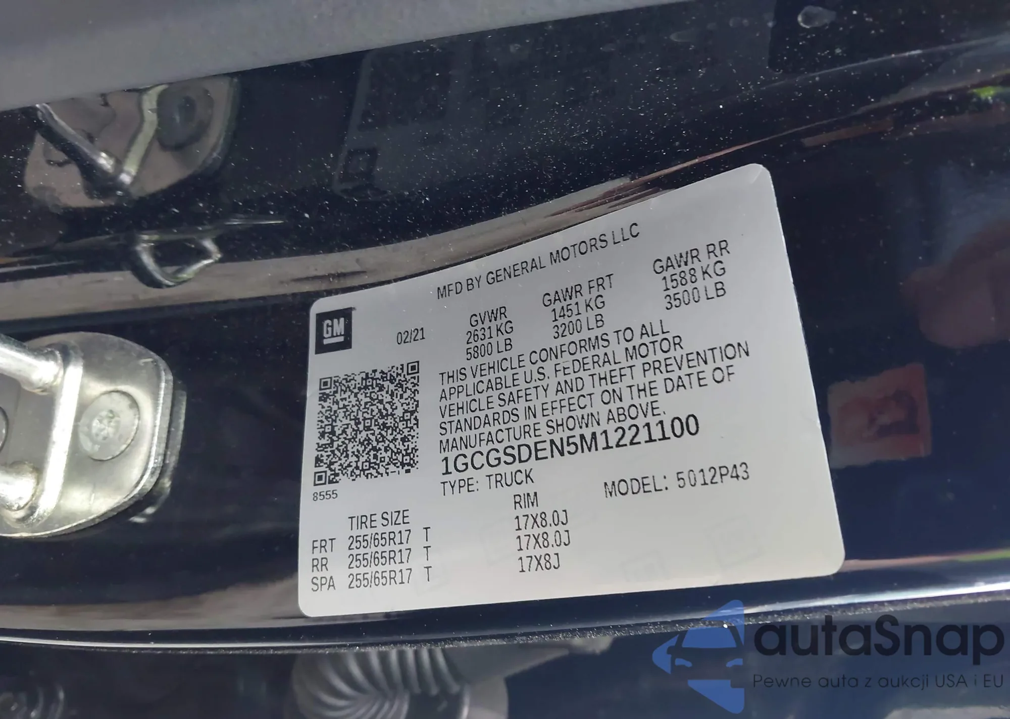 • VIN 1GCGSDEN5M1221100