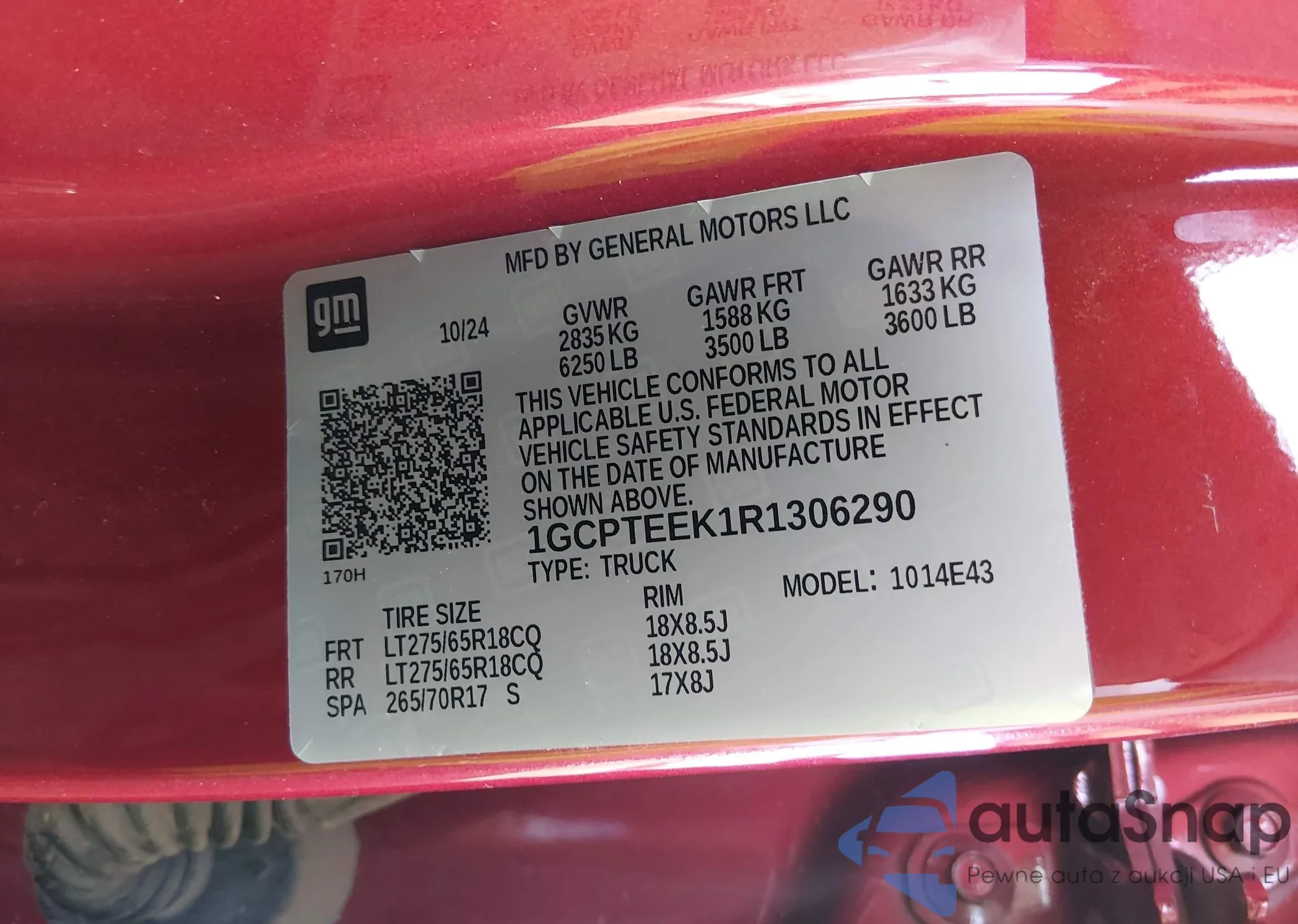 LOT: 44016042 VIN: 1GCPTEEK1R1208649