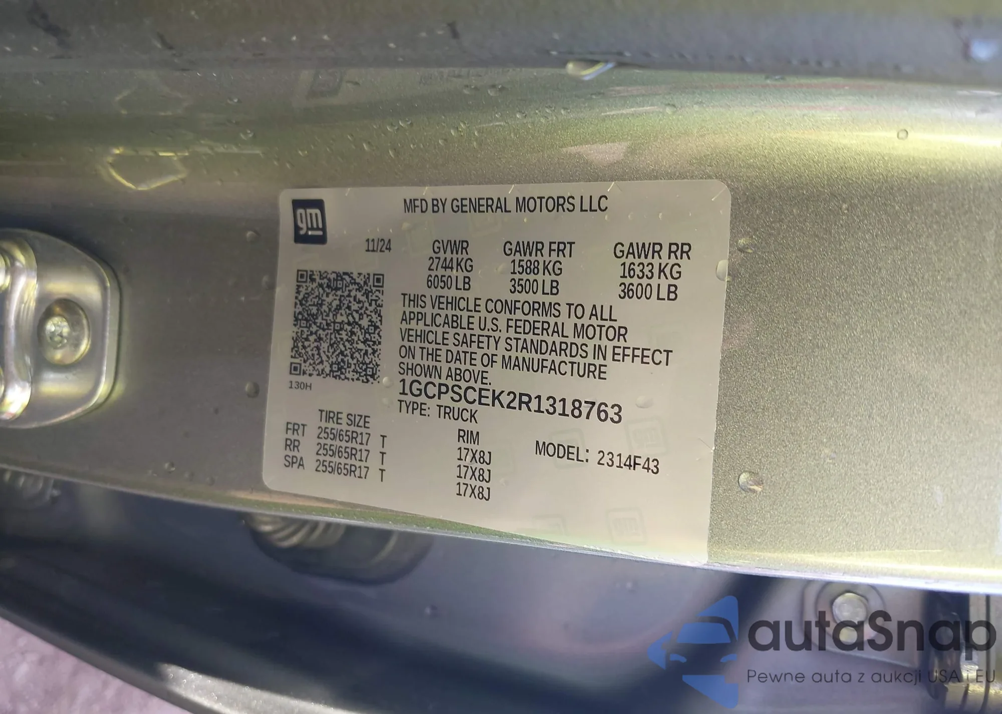 LOT: 43728891 VIN: 1GCPTEEK8R1187976