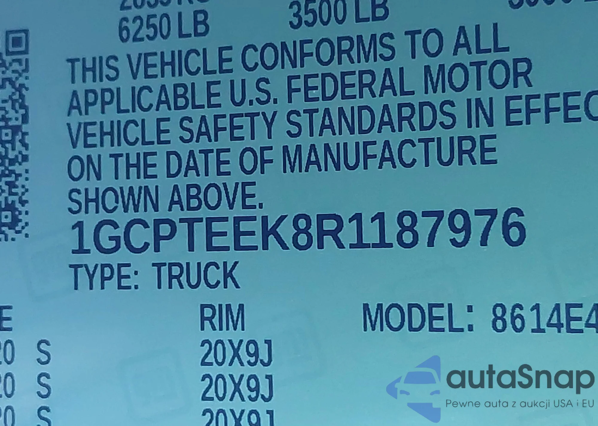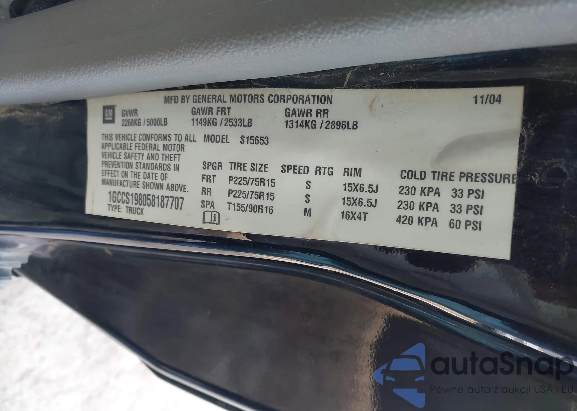 LOT: 43728356 VIN: 1GCCS198058187707