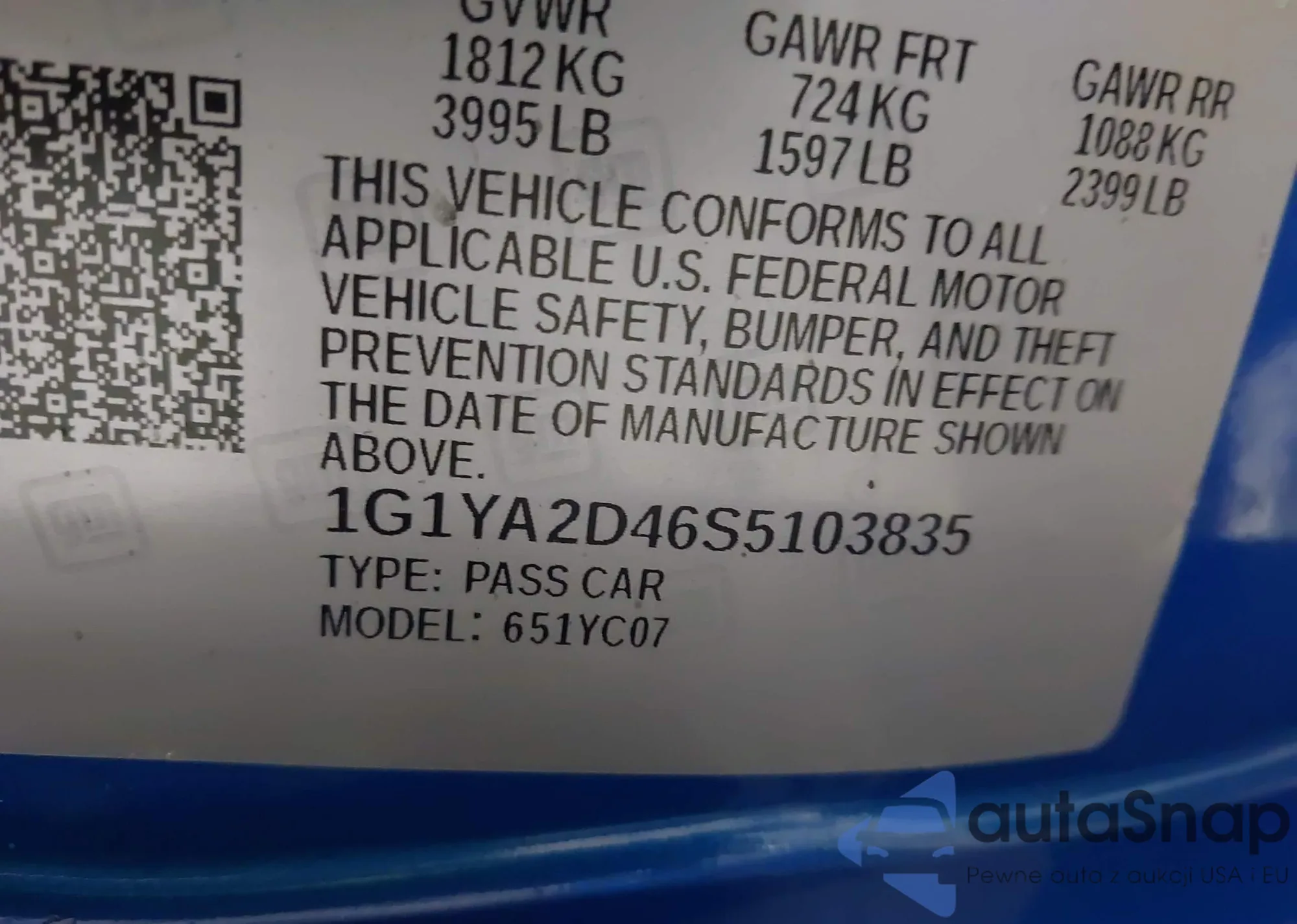• VIN 1G1YA2D46S5103835