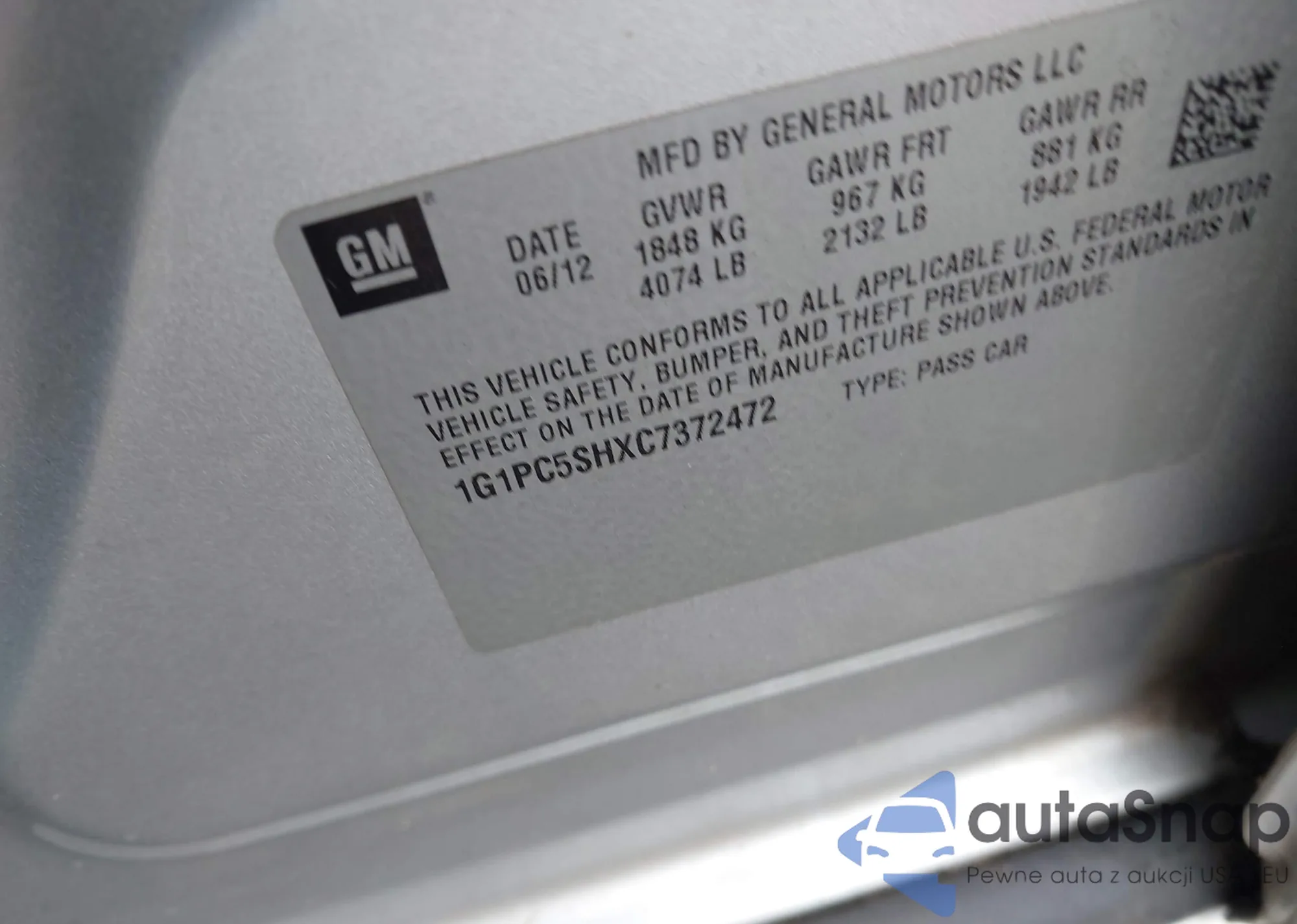 • VIN 1G1PC5SHXC7372472