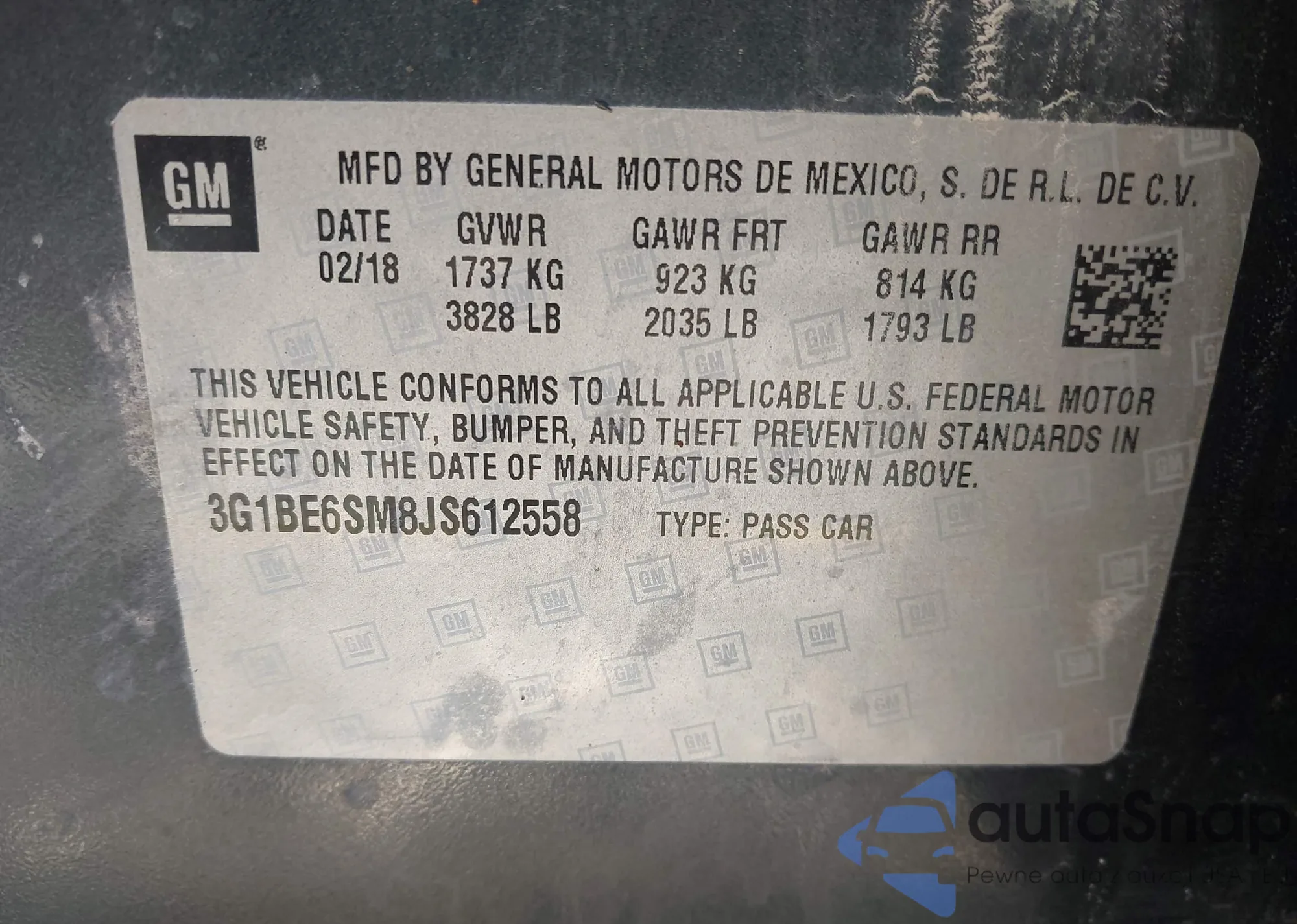 • VIN 3G1BE6SM8JS612558
