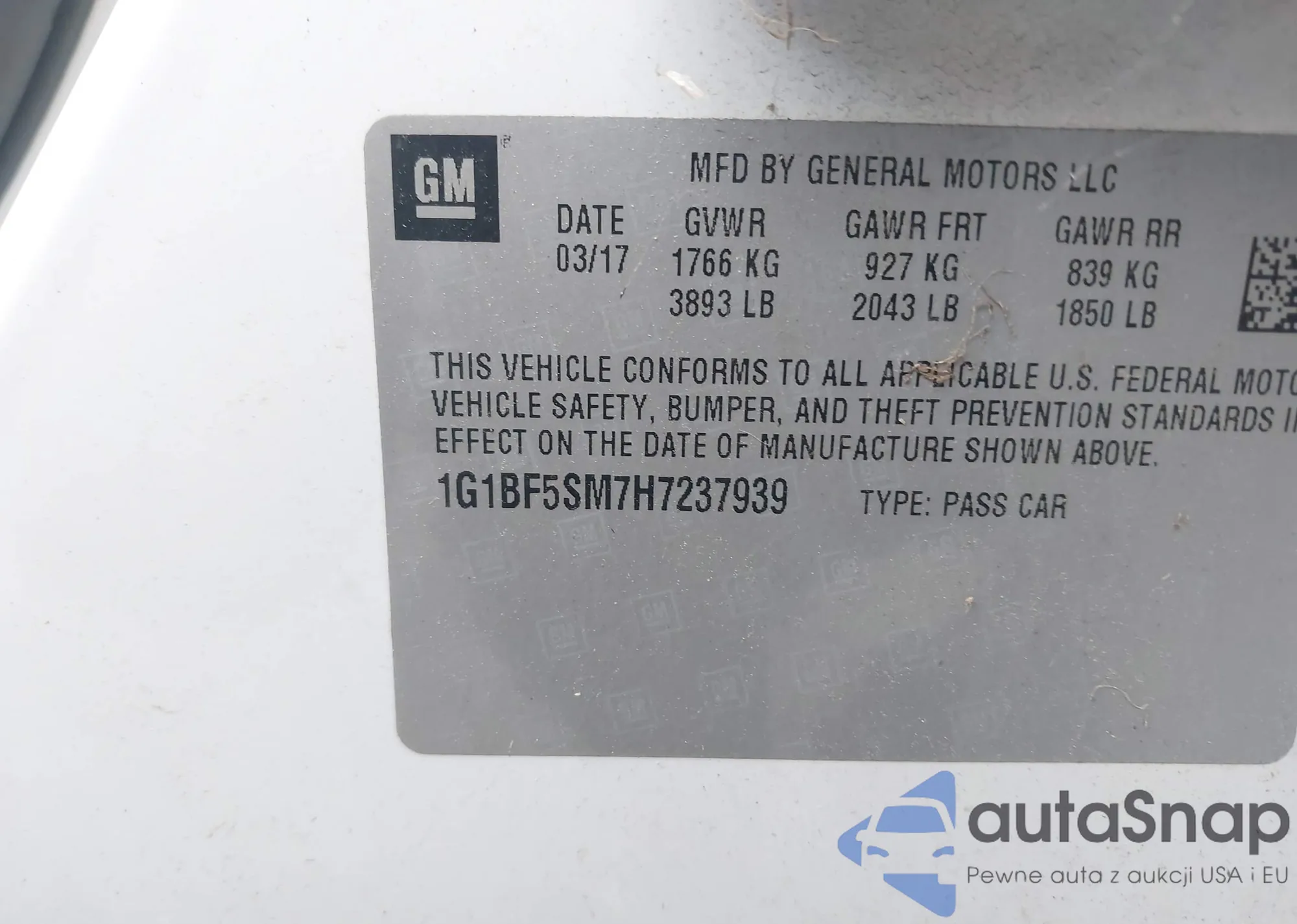 • VIN 1G1BF5SM7H7237939