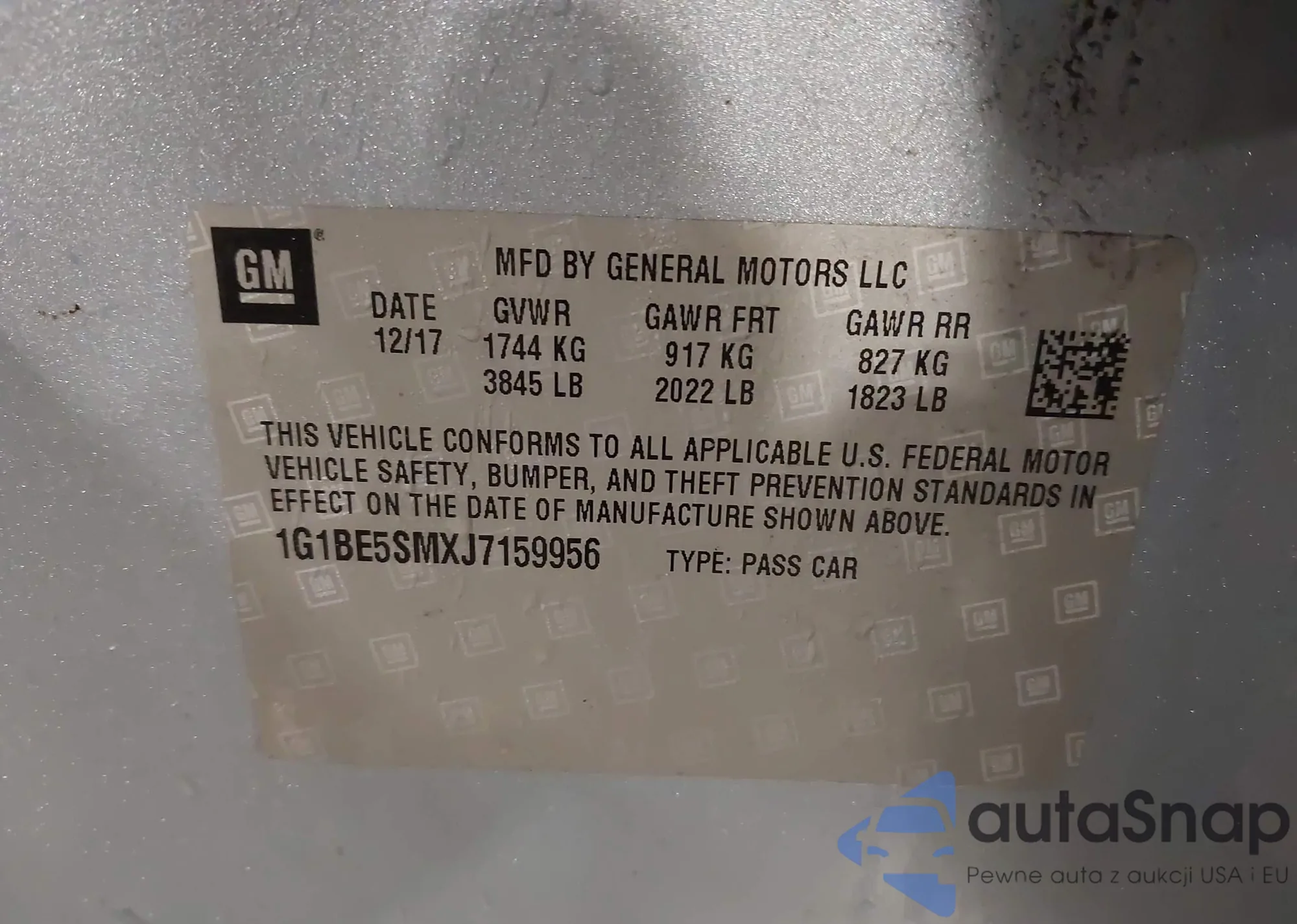 • VIN 1G1BE5SMXJ7159956