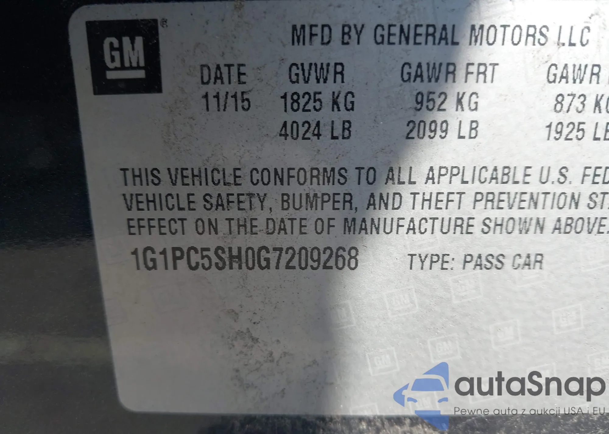 LOT: 44366770 VIN: 1G1PC5SH0G7209268