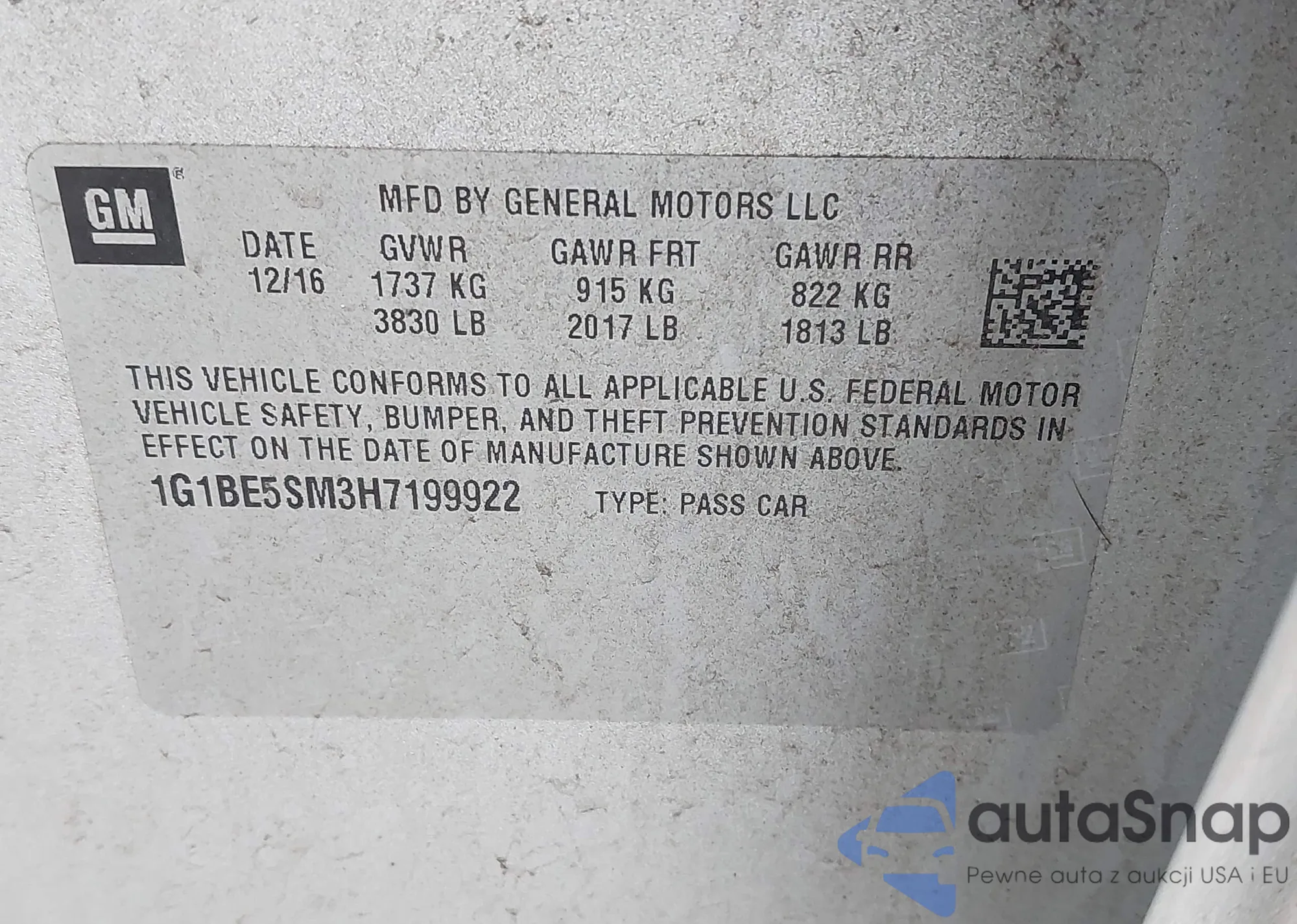 LOT: 44419054 VIN: 1G1BE5SM3H7199922
