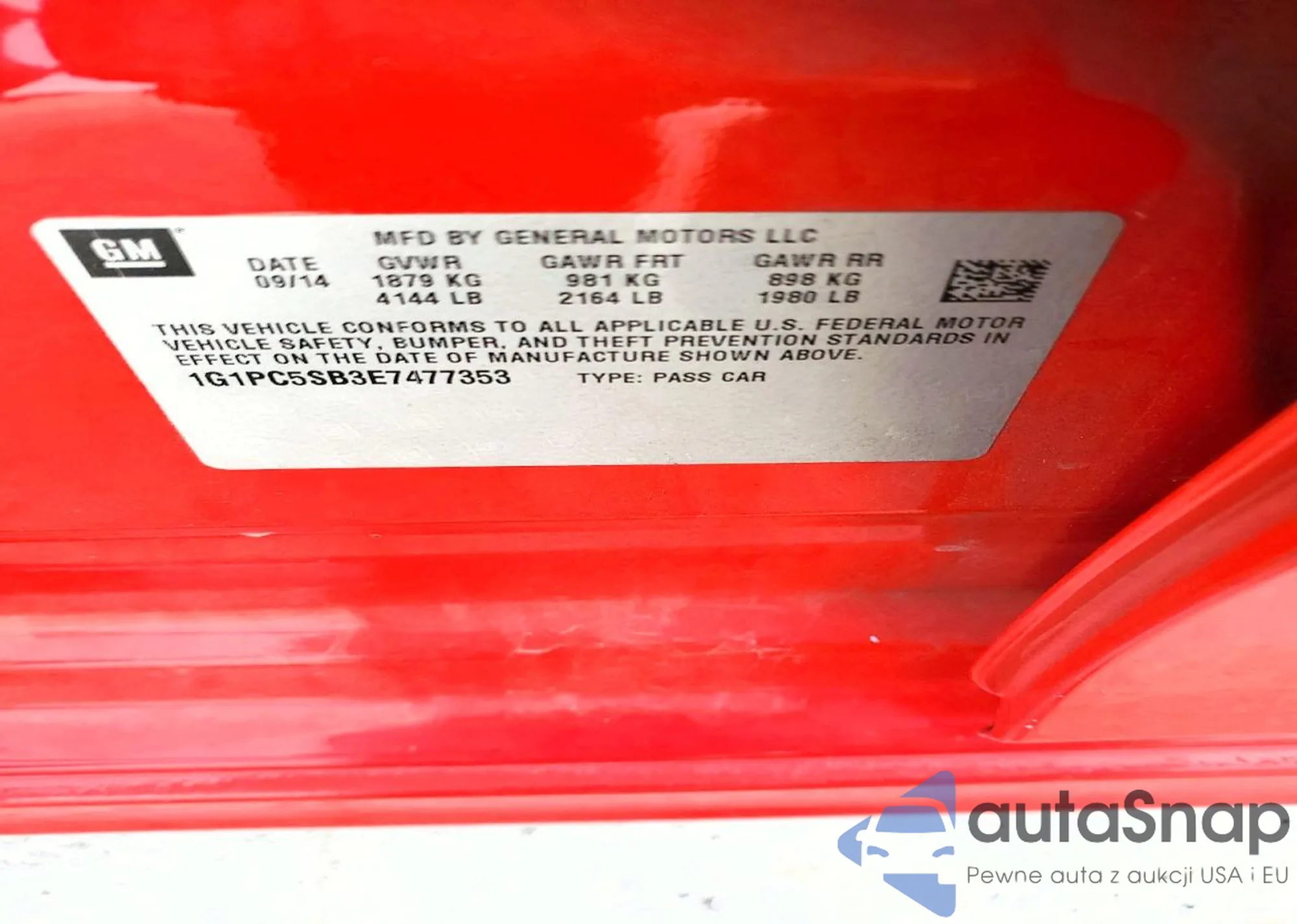LOT: 79614605 VIN: 1G1PC5SB3E7477353