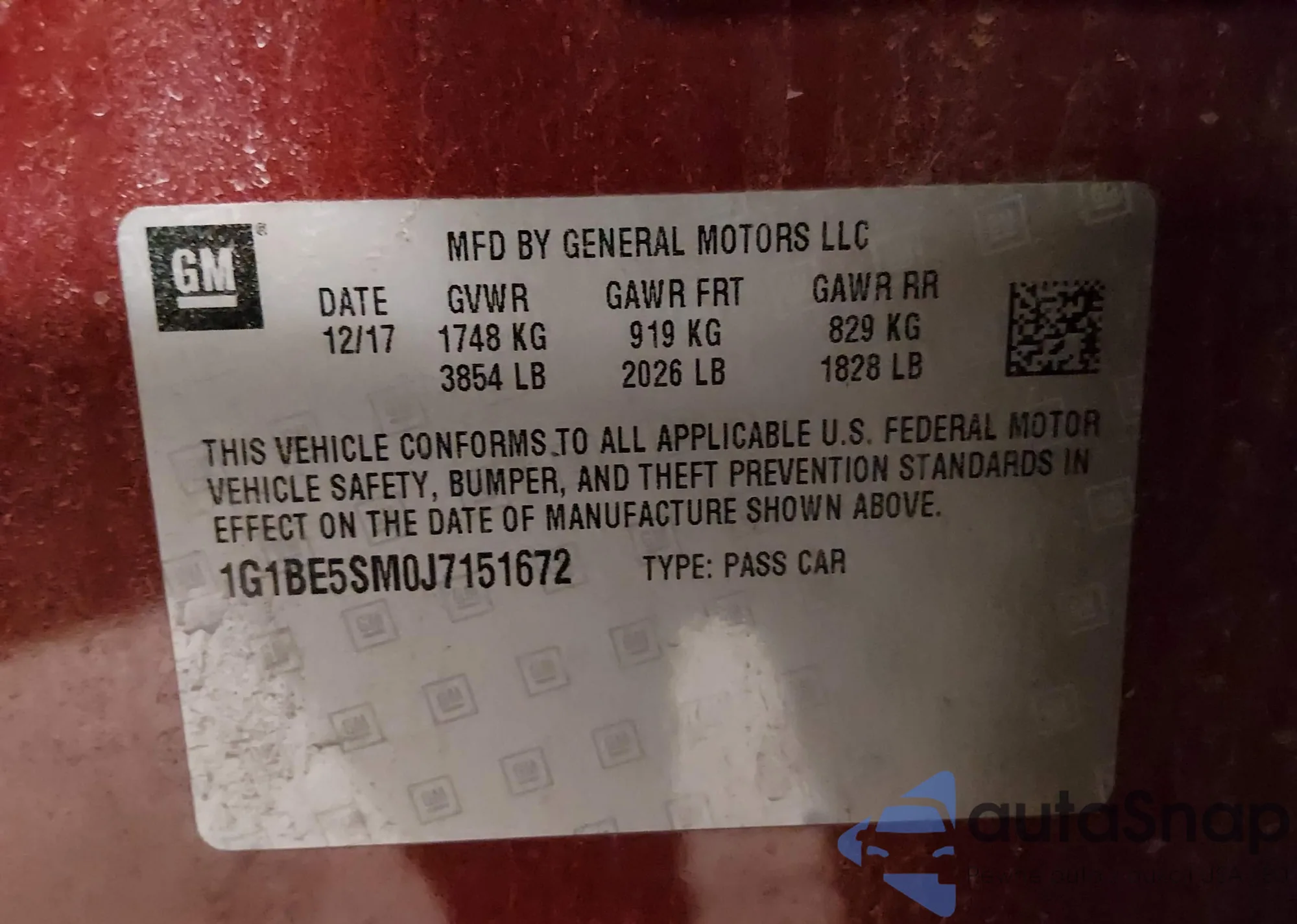 LOT: 44208904 VIN: 1G1BE5SM0J7151672
