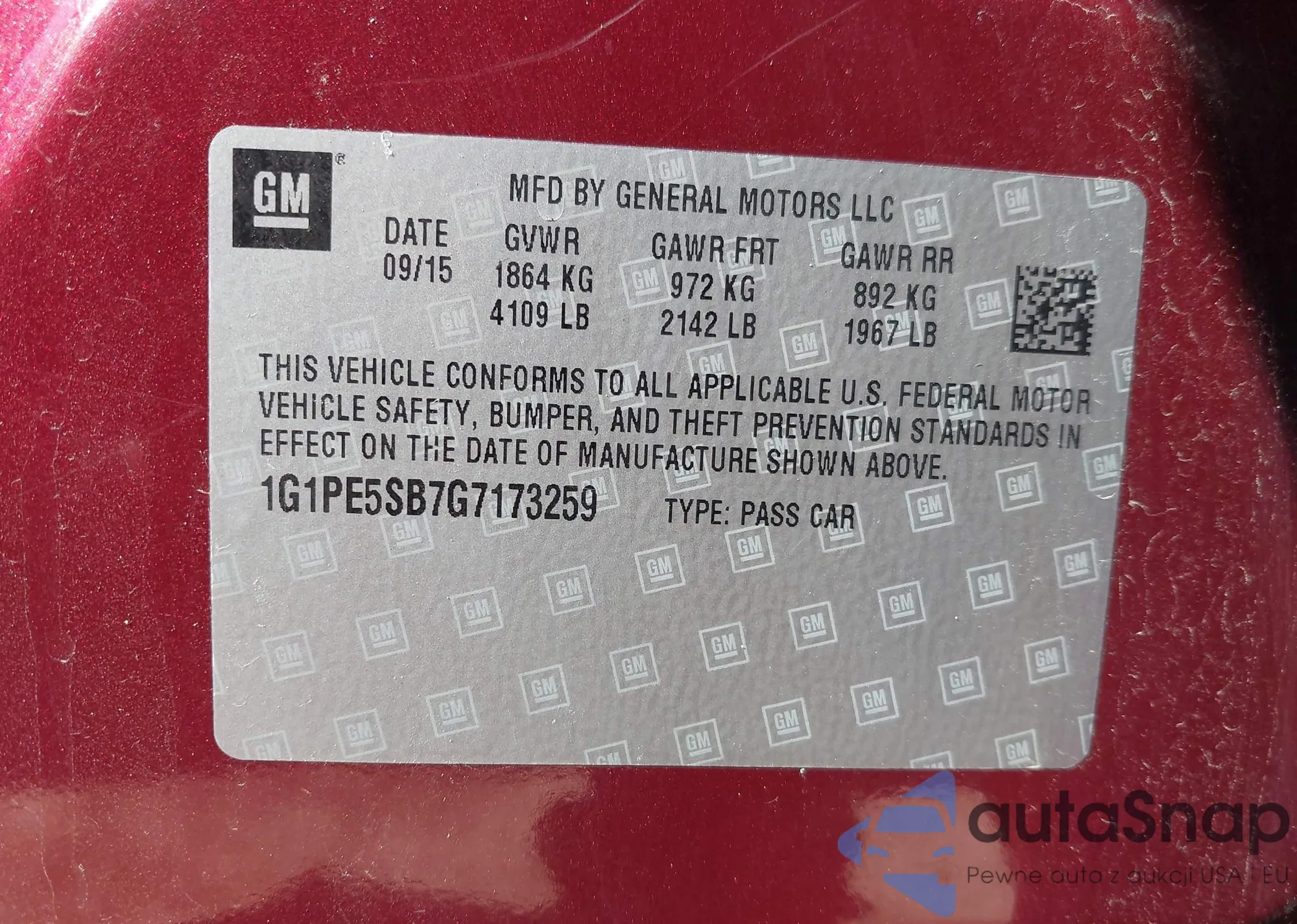 LOT: 43561954 VIN: 1G1PE5SB7G7173259