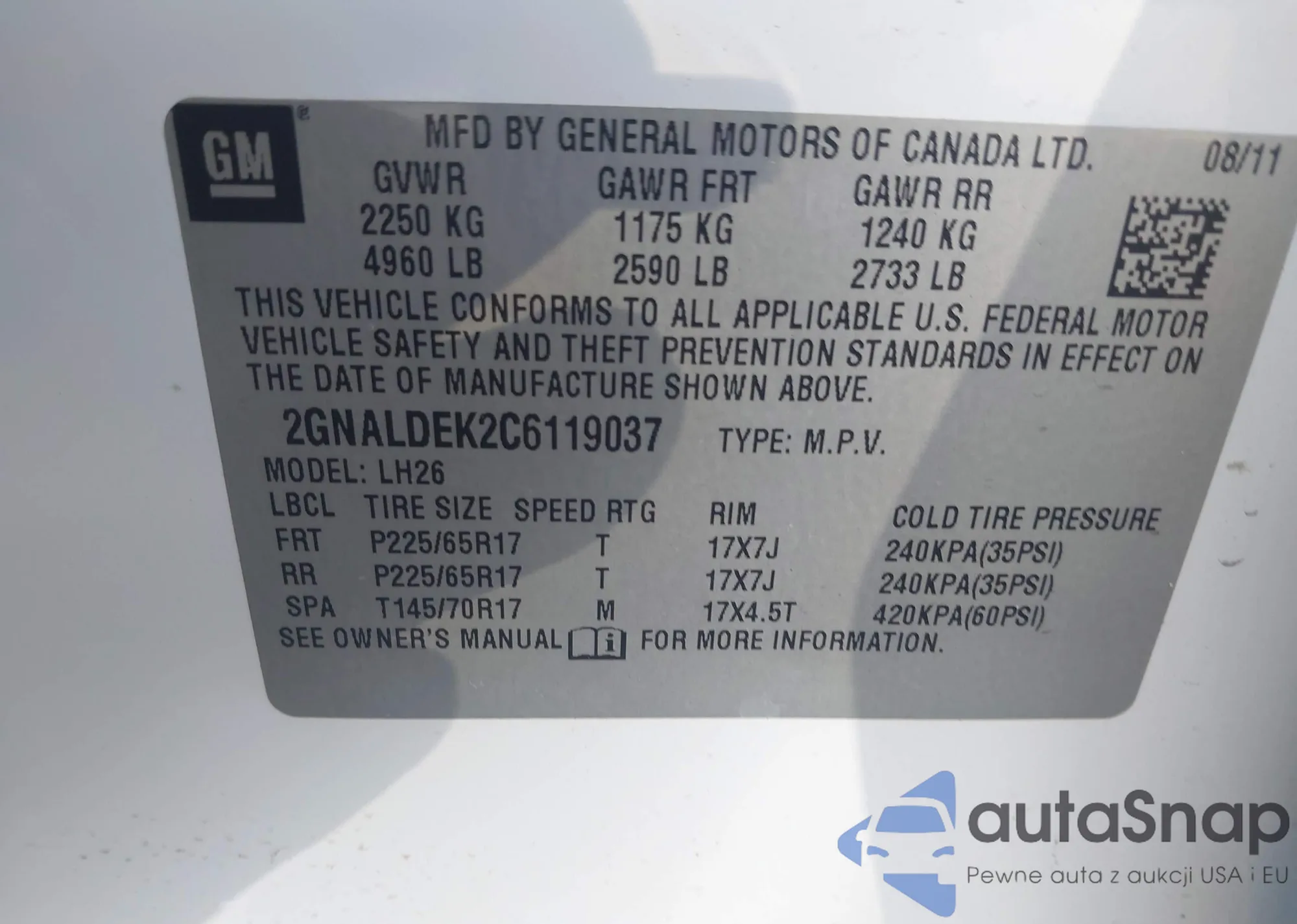 • VIN 2GNALFEK8D6150144