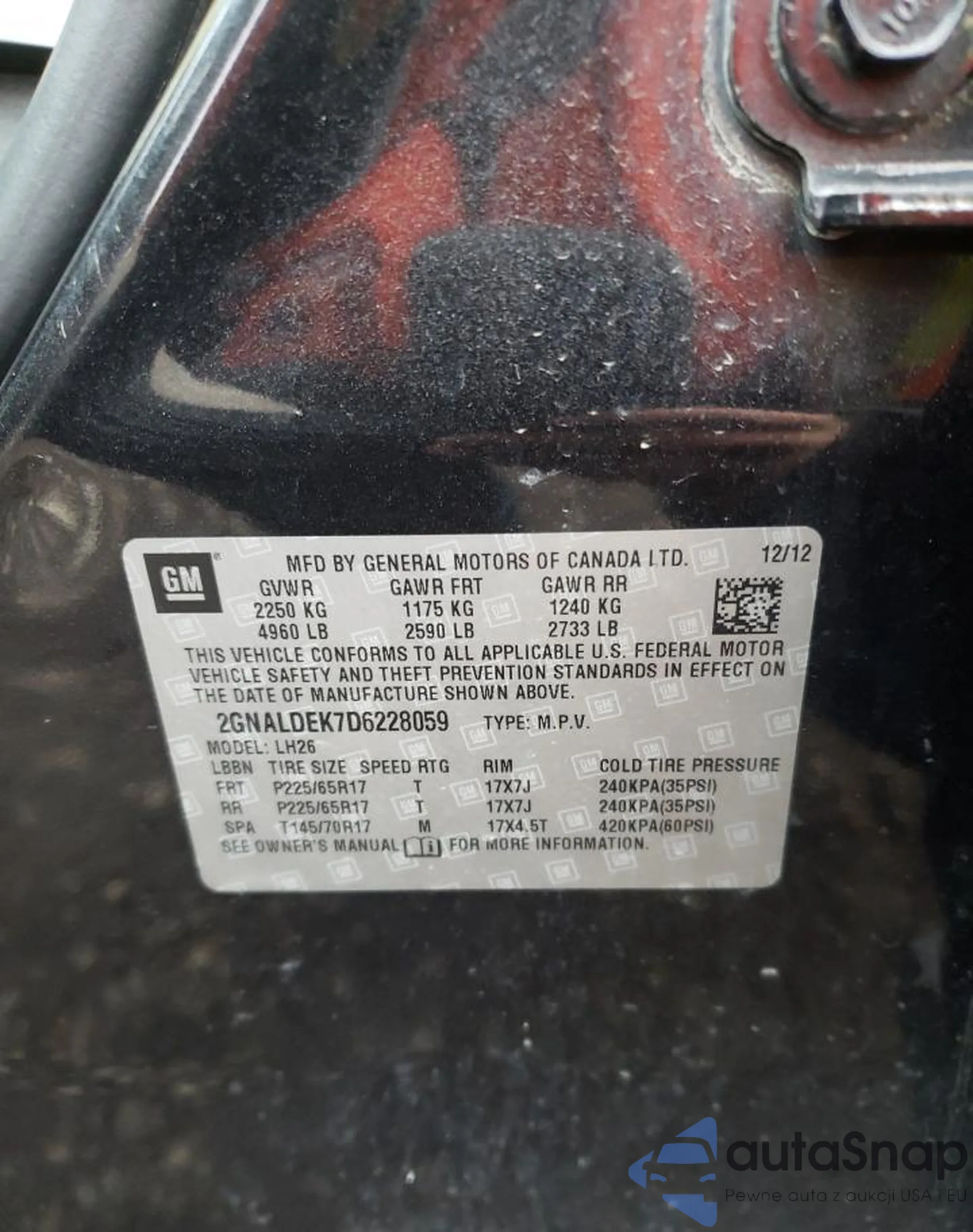 • VIN 2GNFLGEK2C6253778