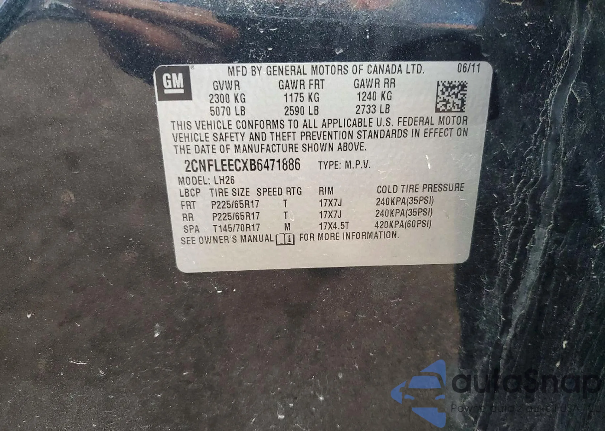 • VIN 2GNFLGE55C6227296