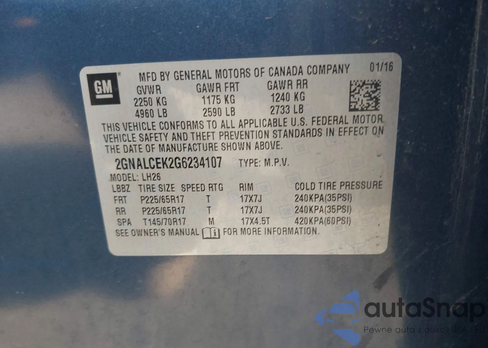 • VIN 2GNALCEK2G6234107