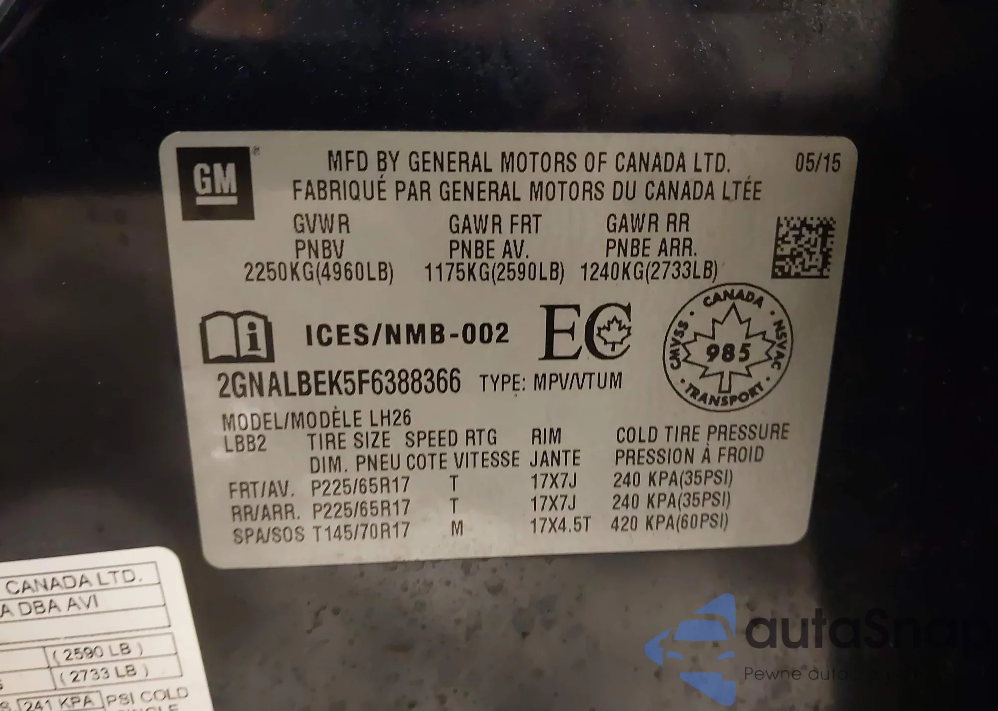 • VIN 2GNALBEK5F6388366