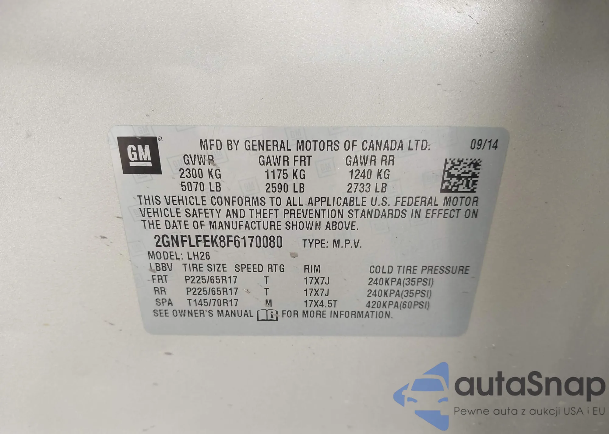 • VIN 2GNFLFEK8F6170080