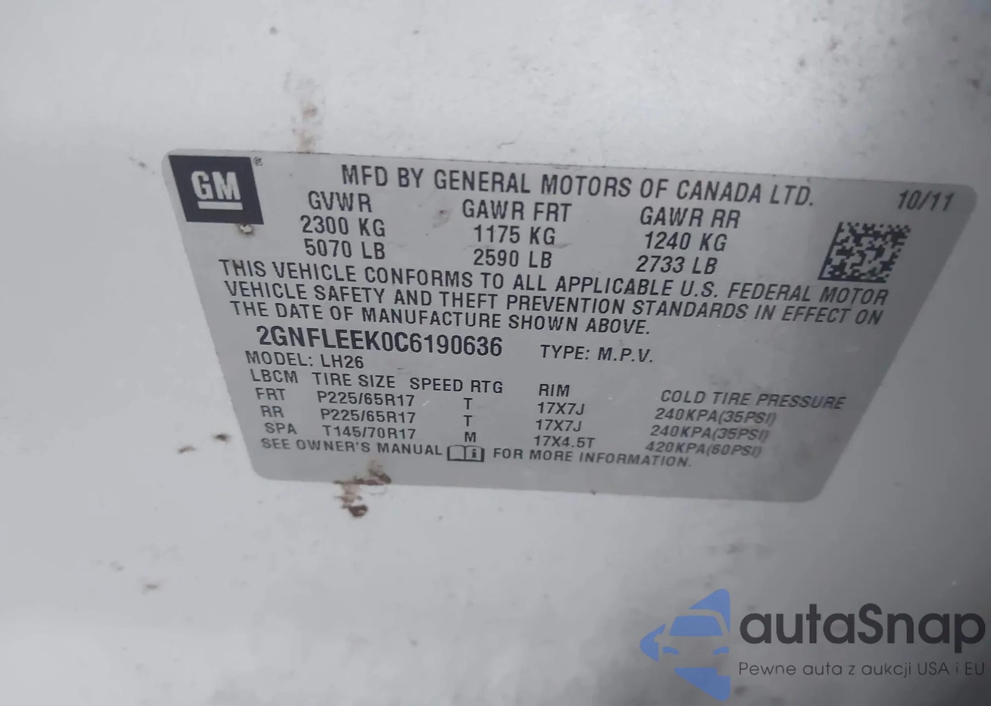 • VIN 2GNFLNE35D6240599