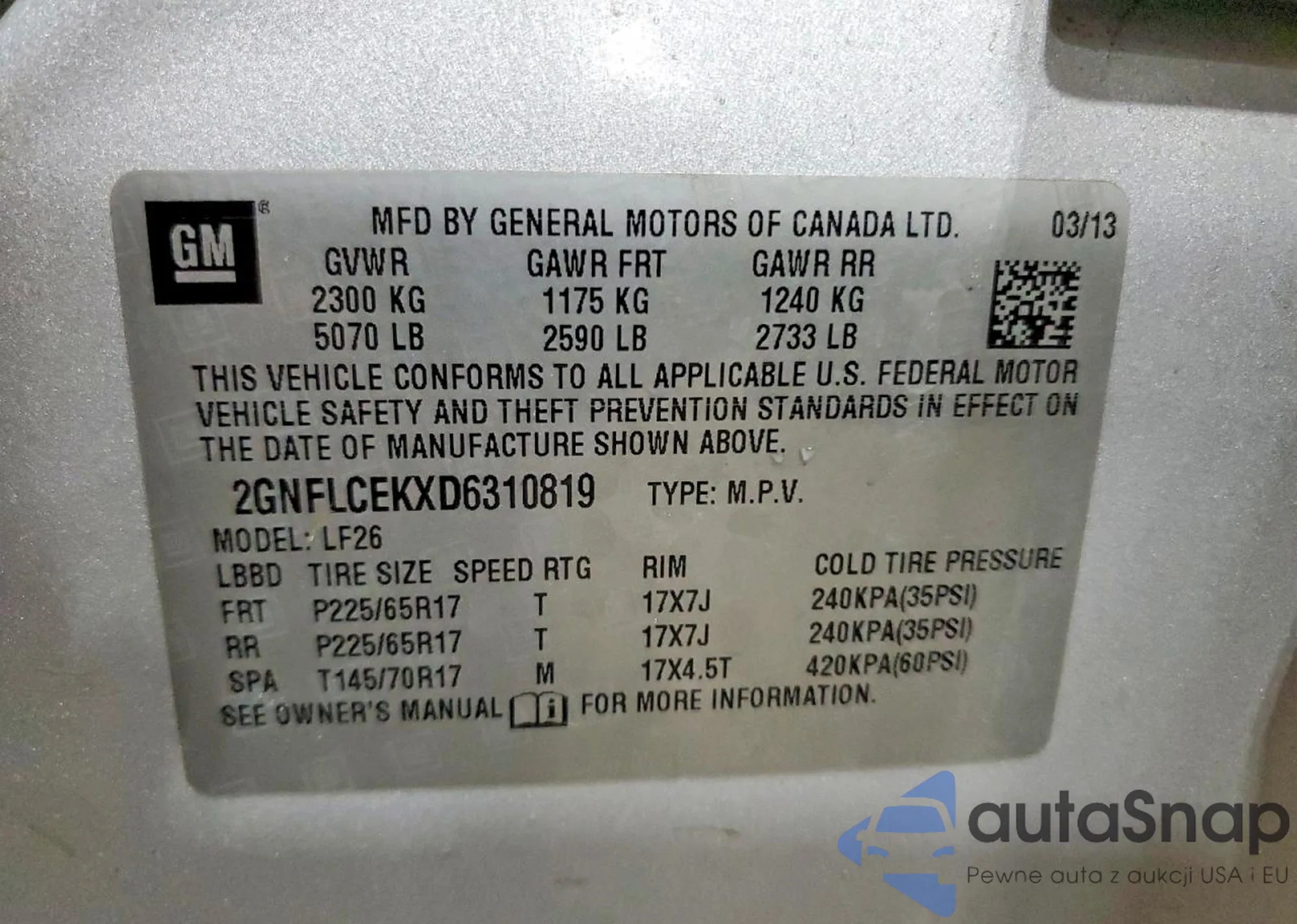 • VIN 2GNFLCEKXD6310819
